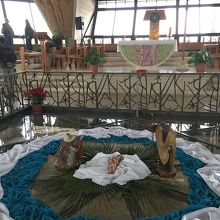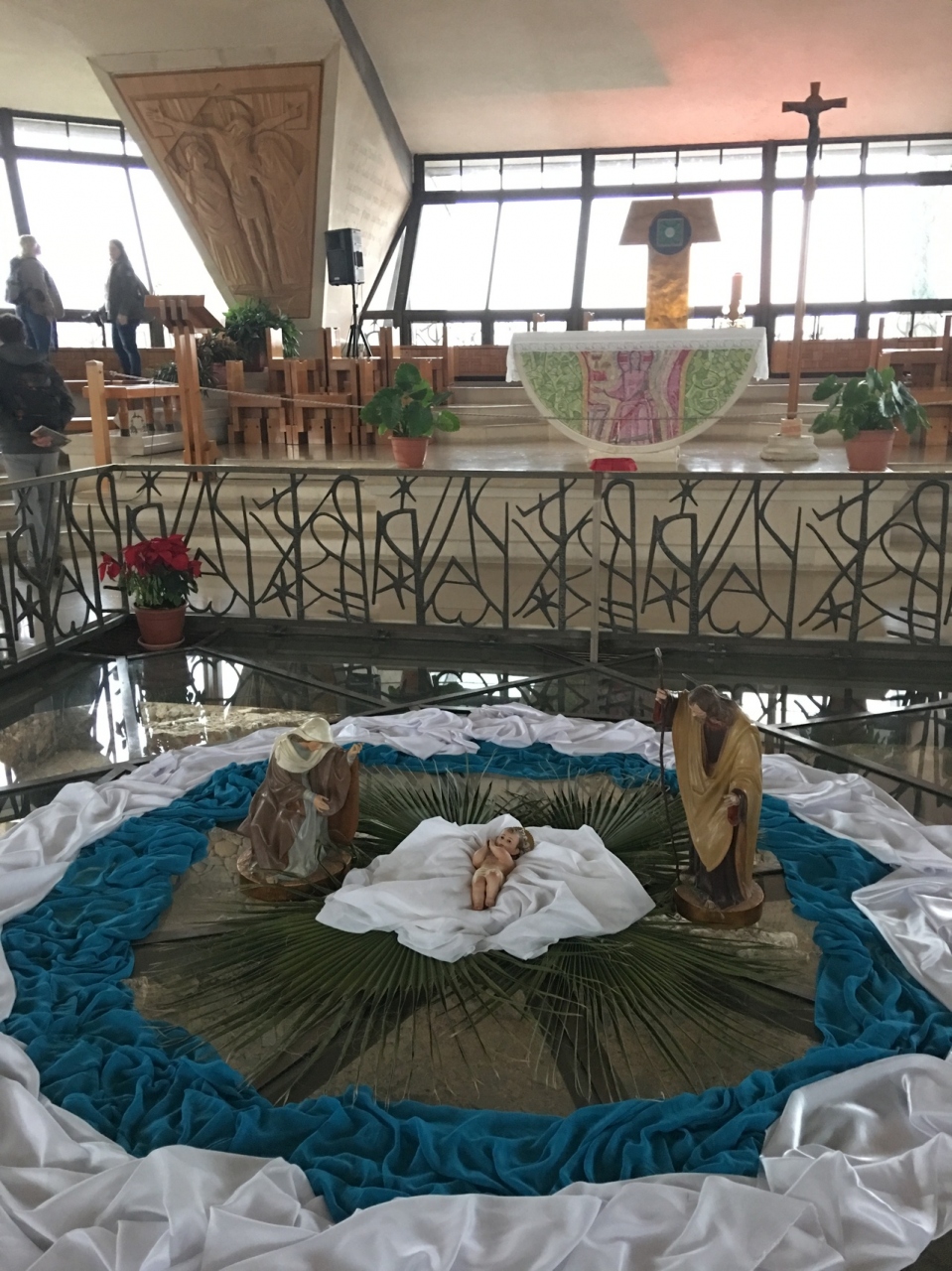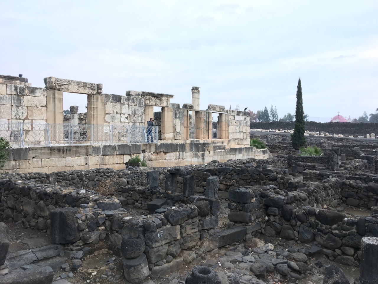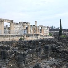 福音書にイエスがこの町で病人などの看病を行なったなどの記述があり、キリスト教徒にとっては重要な場所になっています。遺跡に入ると黒い石材と白い石材とが使われており、近辺にない白い石材を遠くから運んできたことがわかりました。地下に埋もれる遺構にはアーチが架かっていました。遺構の上には近代的な教会が建てられていました。