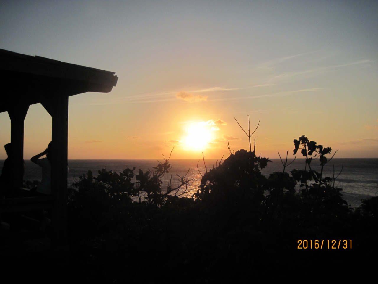 2016年、大晦日最後の夕日を見に行きました。宿泊先ケンティンのホテルから、バスで15分程度の場所です(バスは遅くまで便があるので夕方でも問題ありませんでした)到着したバス停からすぐに、公園入場のゲートがあり、入園料を払って中に入ります。遠くに灯台があって、大きな広場になっています。灯台は台北の高校生が、修学旅行で来るところらしいです。園内案内図で、海渡亭という展望台まで徒歩15分ぐらいです。途中に岩場の穴があったりします。展望台からは東シナ海に沈む2016年最後の夕日を見ました。雲が水平線のところにあって、残念ながら最後は雲に隠れましたが、とても景色の良いところでした。