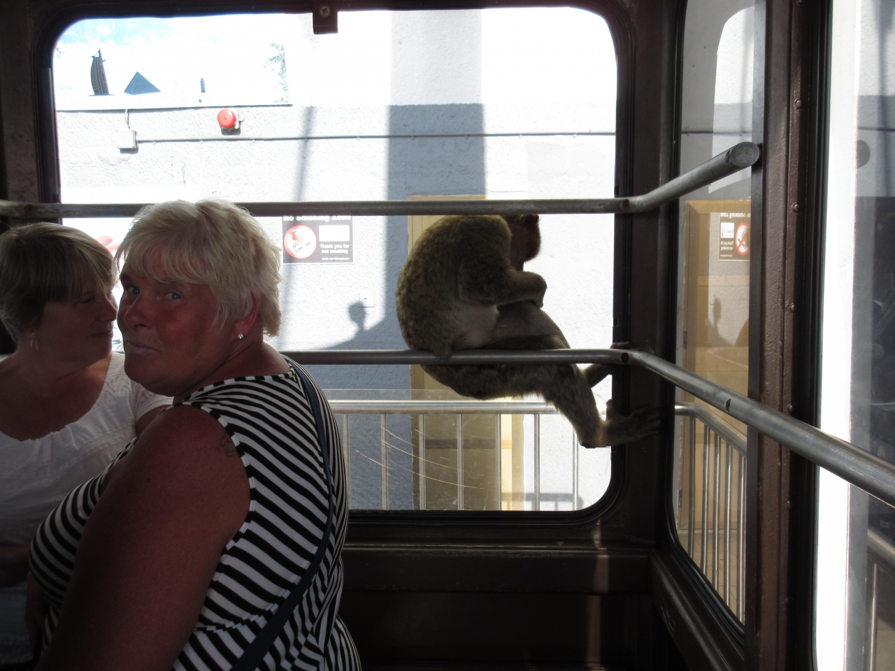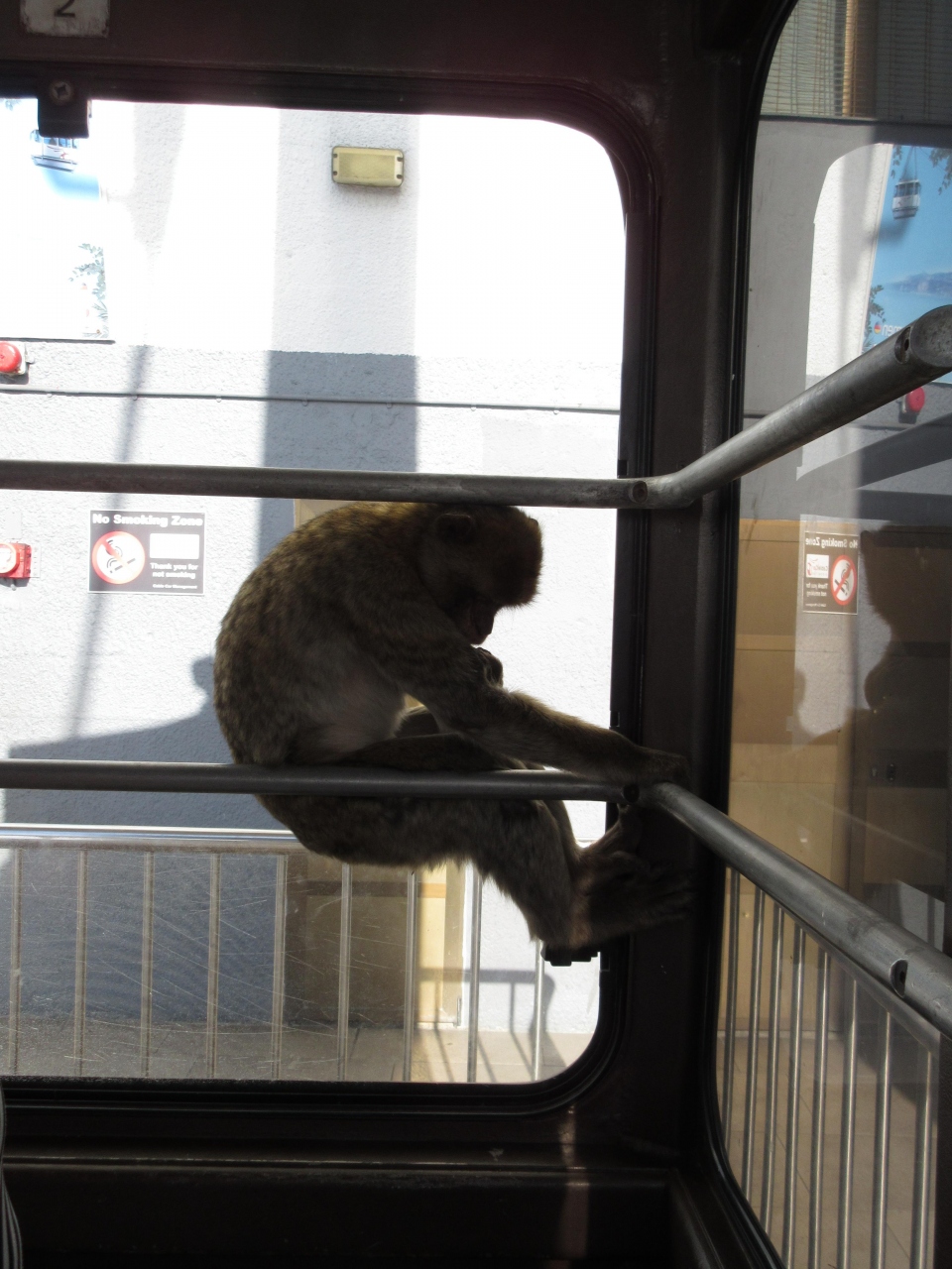「猿がいる限りイギリスの統治が続く」と言われ、歴史的な背景があって自然保護区のジブラルタル。ヨーロッパで唯一の猿の生息地となっている。ロープウェーで山頂まで上がると、野生の猿が人間を恐れずに生息していて可愛い。道端に座ってる猿もいた。帰りのロープウェーでは窓にまで寄ってきて驚いた。係り員が追い払うので安全は確保できる。