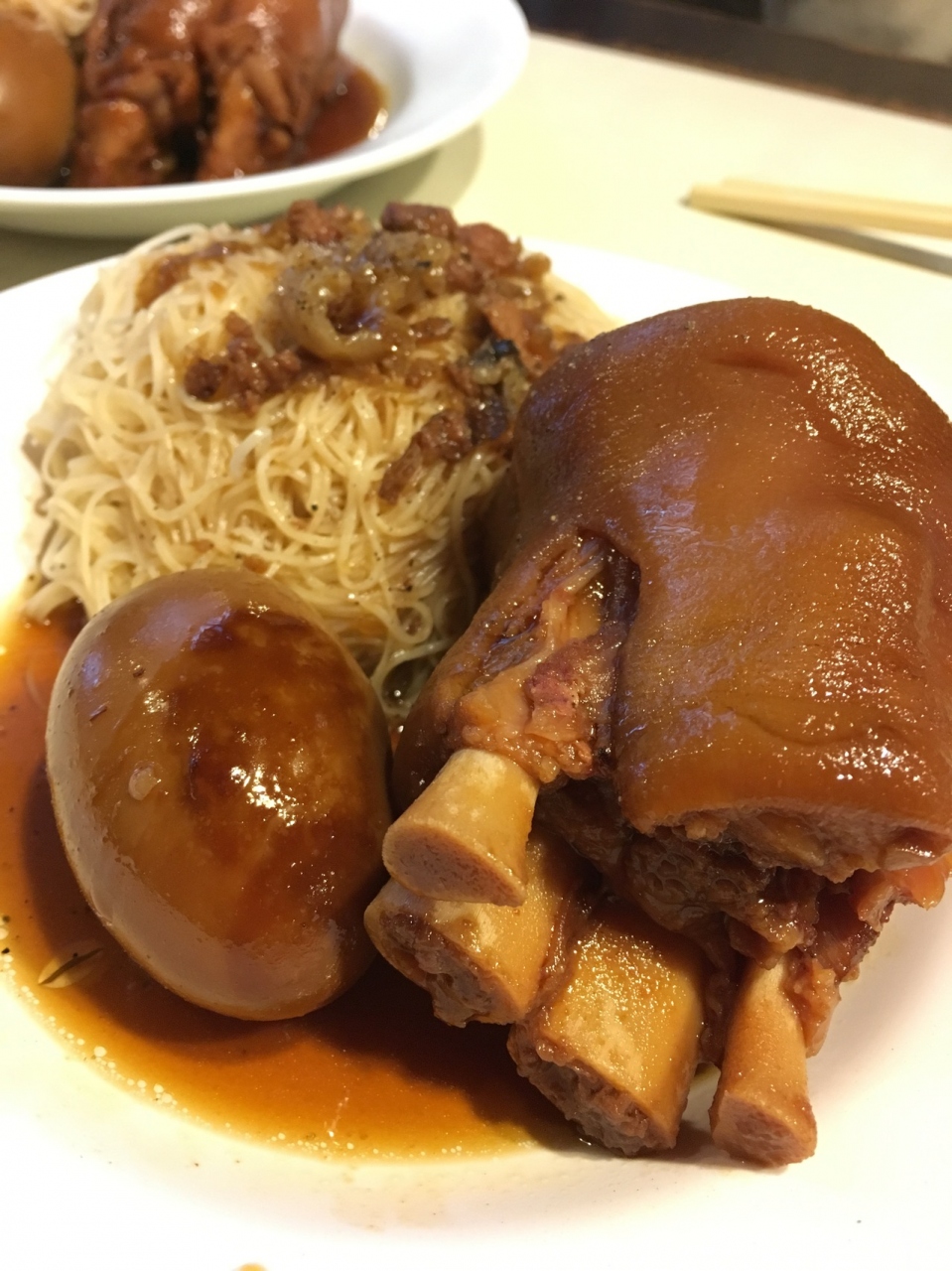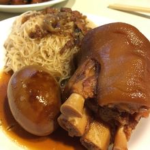 猪脚麺線、豚の脚の部位が選べるのか脚の先と中段らしきことがメニューに書かれていました。よく分からなかったのですが後でレシート見ると1つずつ注文されていて、それぞれお値段$110と$115でした。