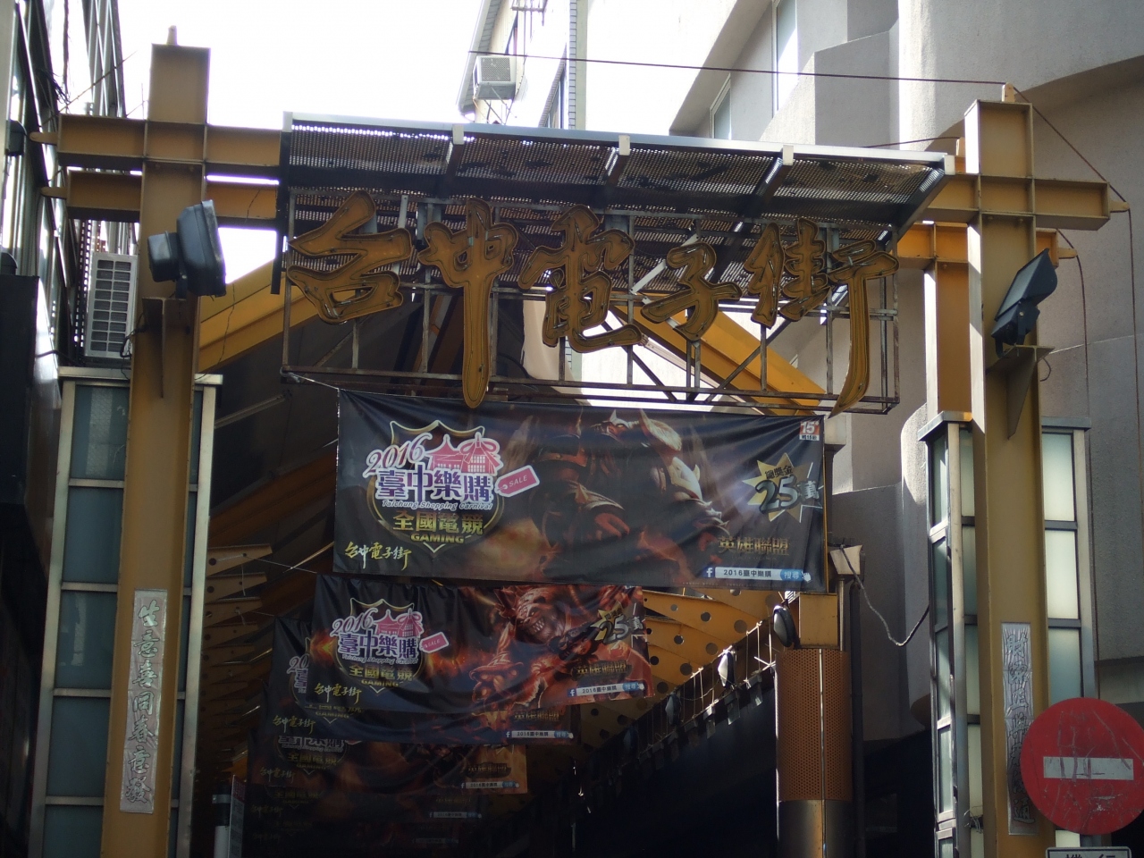 台中駅に近い電化製品のお店が並んだ商店街。日本の秋葉原的なものなんでしょうが、にぎわった様子もなく、ちょっと寂しい雰囲気でした。わざわざ行こうというものではなく、ぶらぶらしてるとなんとなく通るという感じでした。