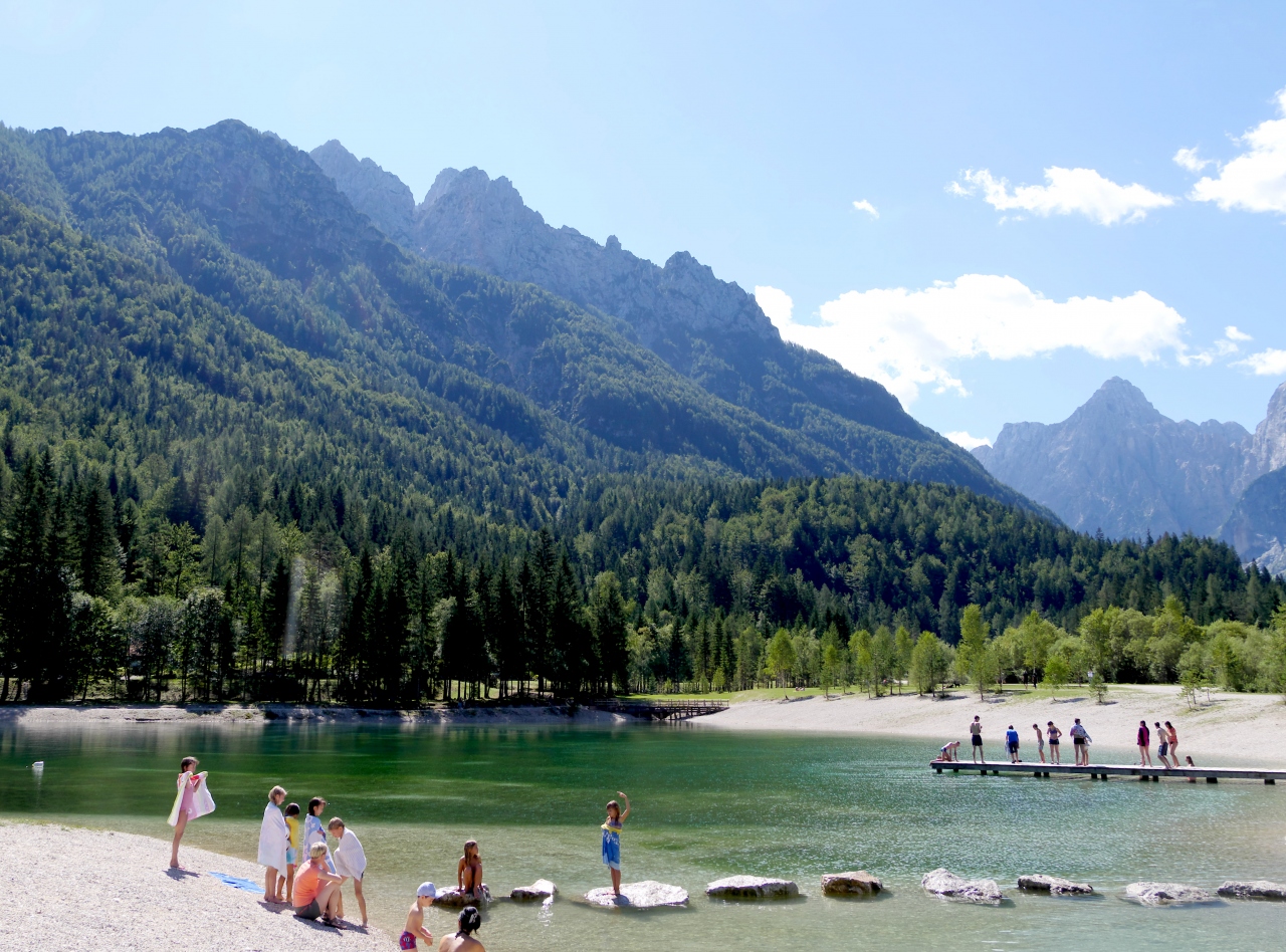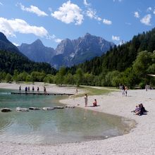 Kranjska Goraから車で5分ほど行ったところにある,半円形の沼を二つ合わせたような湖 目の前にトリグラフ山塊が良く見える.浅い沼の様でたくさんの子供たちが遊んでいた.きれいな湖だ.こことGoraの街から西に4㎞ほどいったZelenciの泉は必見と思う.この街はオーストリアとイタリアの国境であと数キロに国境がある町 素晴らしい街だ