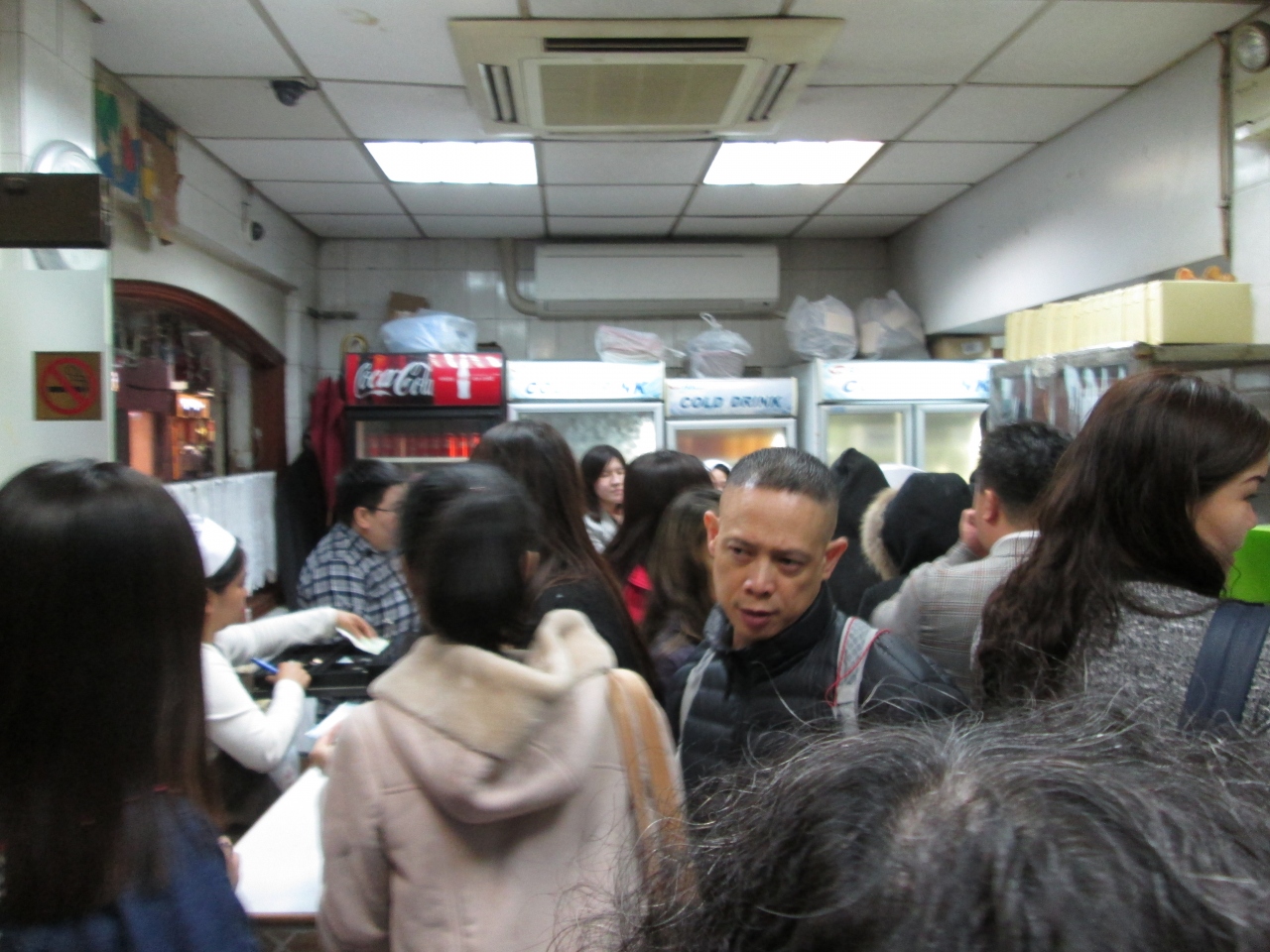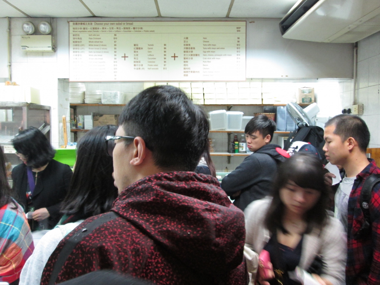 マーガレットカフェナタが混雑している場合、お店の外に行列が2つ出来ています。お店に向かって左側は支払いのためレジに向かう列、右はレジで支払い後にレシートを持って商品を受け取る列でした。分かりづらいですが、これがこのお店のシステムでした。