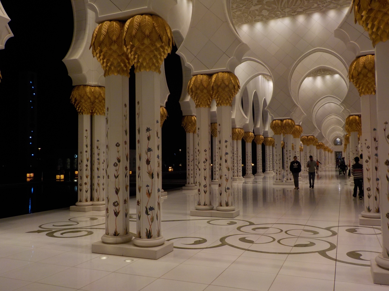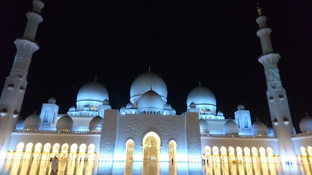 前回は日中に行きました。その際に同行したガイドに「夜もおススメ」と言われたため、今回は夜に行きました。バスでも行くことは可能のようですが、タクシーの方が便利です(アブダビ市内のタクシーは安いです)。帰りもタクシーがたくさんスタンバイしているので大丈夫です。当たり前ですがモスクは服装にに注意してください(露出した格好が厳禁)。女性はヒジャブを貸してくれるようでした(私は借りませんでしたが・・・)