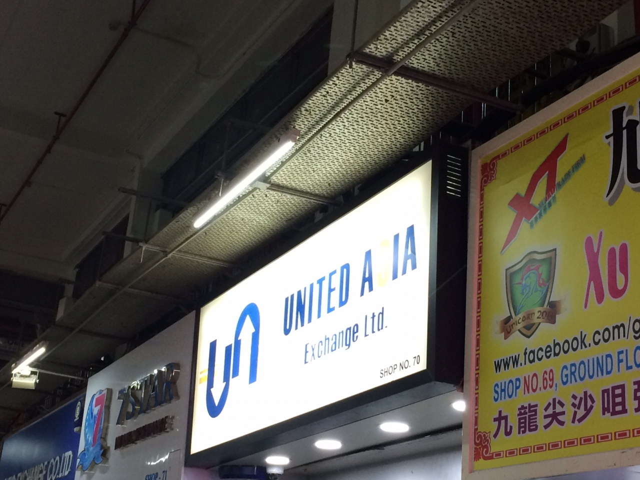 1Fの両替所はレートが悪いと書かれていましたが、お店が休みなら仕方ないと思い、1Fの両替所に行ってみました。NO COMMISSION(手数料なし)と書かれていましたが、なんとなく信用できず、日本円を渡す前に、この金額だと香港ドルいくらになるか?と聞いてみました。すると、計算して、紙でメモを渡してくれました。香港の空港で見たレートより良かったので、両替することにしました。1日目に両替したのは、日本円で7000円分だけにしました。後日、お金が足りなくなり、またチョンキンマンションへ行き、また1Fの両替所で両替しました。1000円か2000円だけの少額だけ両替したかったのですが、お店によっては1万円からでないと両替しないと言われたお店もありましたが、他の店舗に行ってみると、1000円でもいいよといって、両替してくれました。