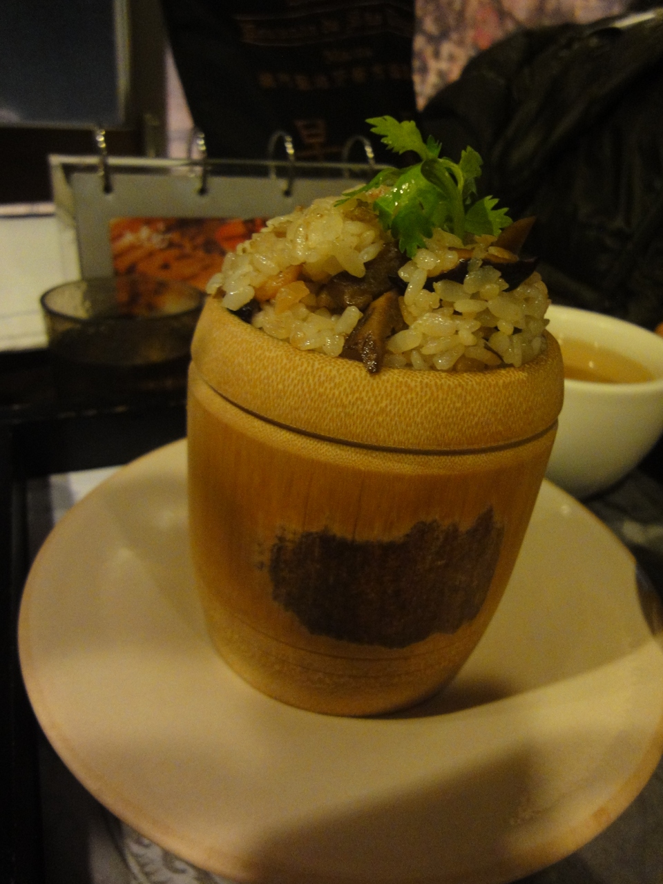 他にも行きたい店があったため、ここでは飲み物は二人分、食事は竹筒飯を