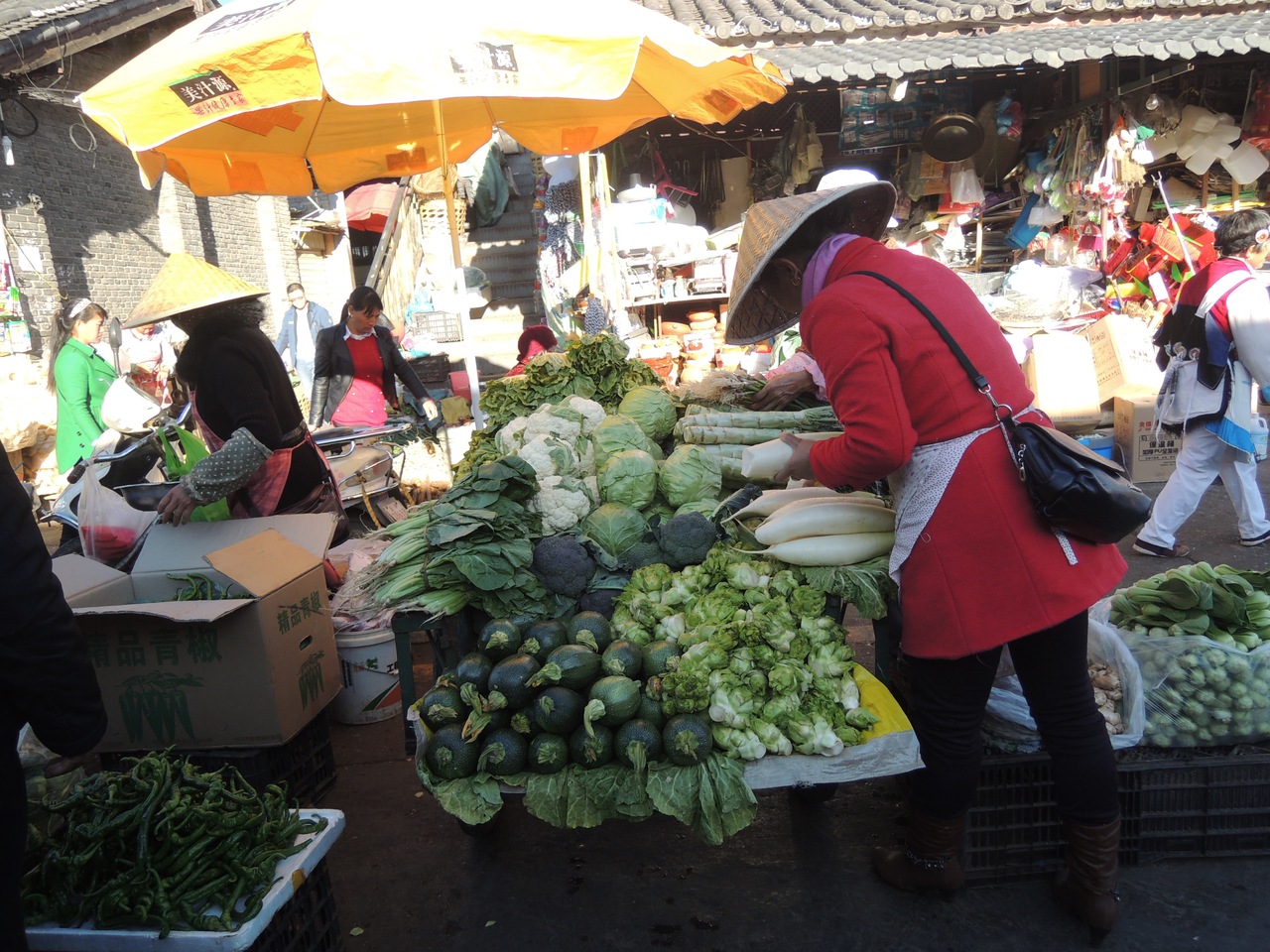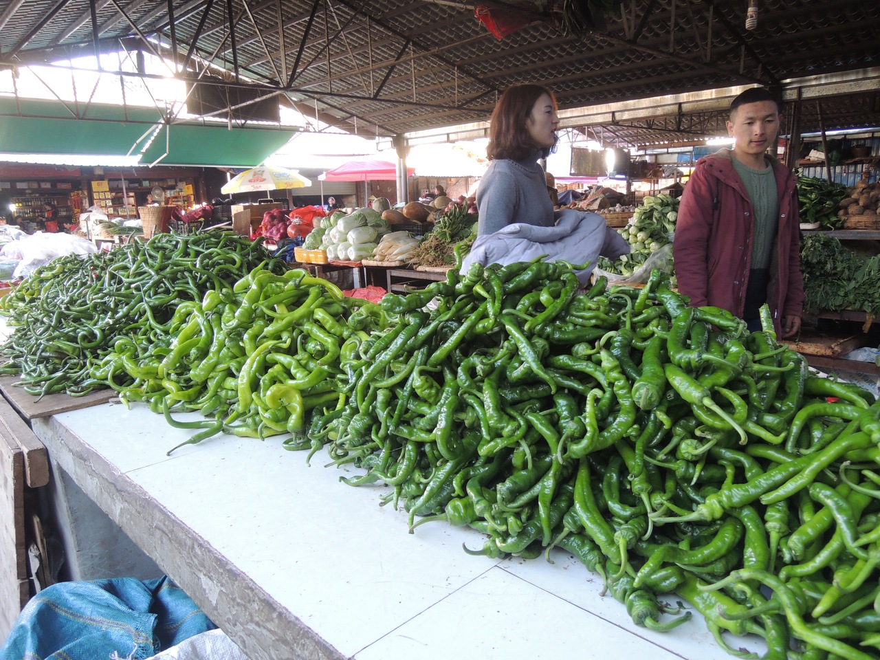 麗江古城の南側にあるローカルマーケット。野菜の他に、お茶、乾物、色んな種類の卵屋さん、お菓子屋さんなどがある。殆ど量り売りで、奥に行く程開けており色んなお店があります。ひまわりの種屋さん1つでもたくさんの種類があり面白い。四方街からは徒歩10分くらい。