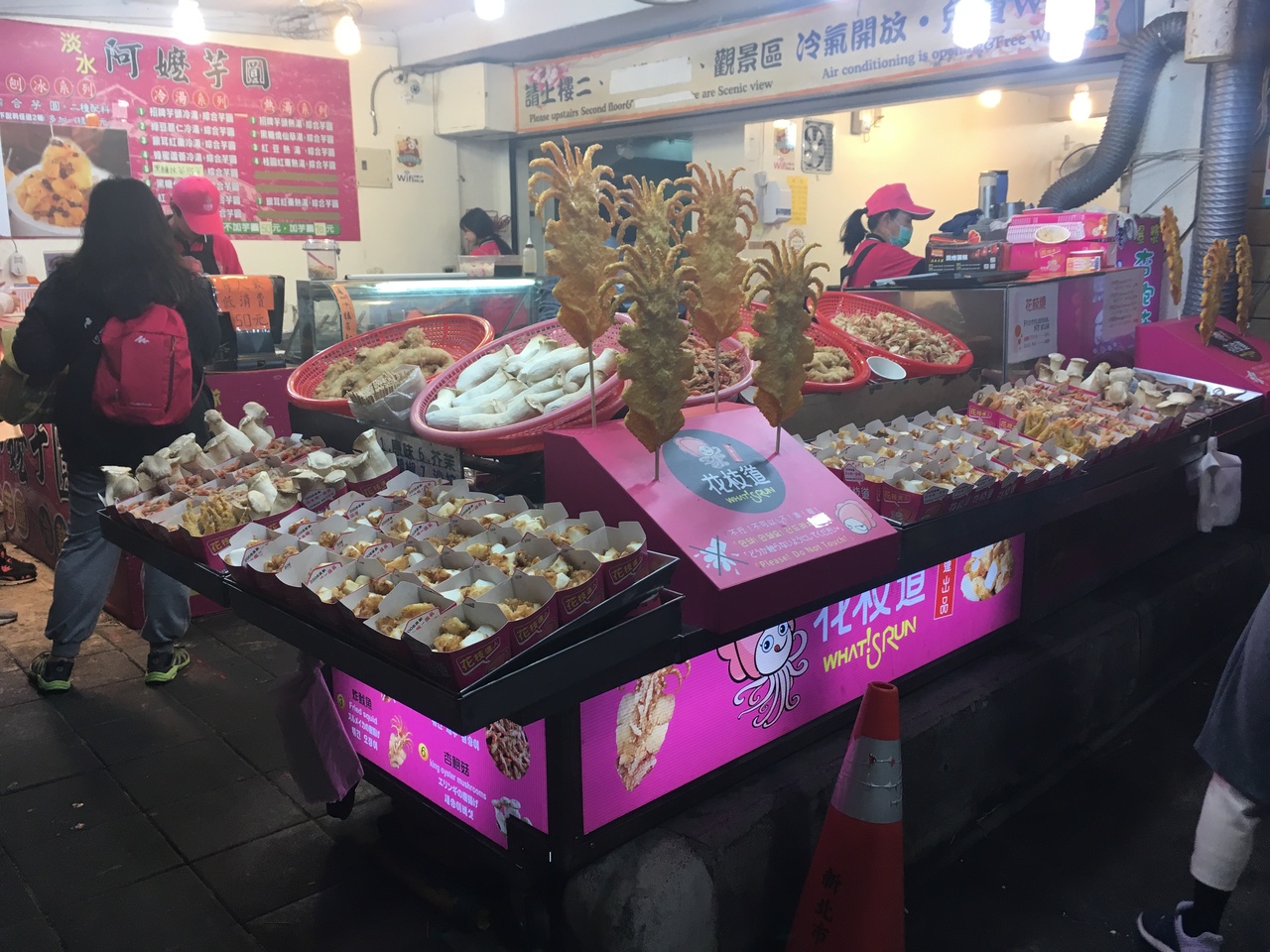 川沿いを食べ歩きながら歩いたり一本中の淡水老街をふらふらしたりと楽しめます。川沿いではイカのフライのお店が多く試食させてくれたりしました。大きな肉厚のイカでしたが柔らかくて美味しかったです。ロングソフトクリームもいろんな味があり美味しかったです。