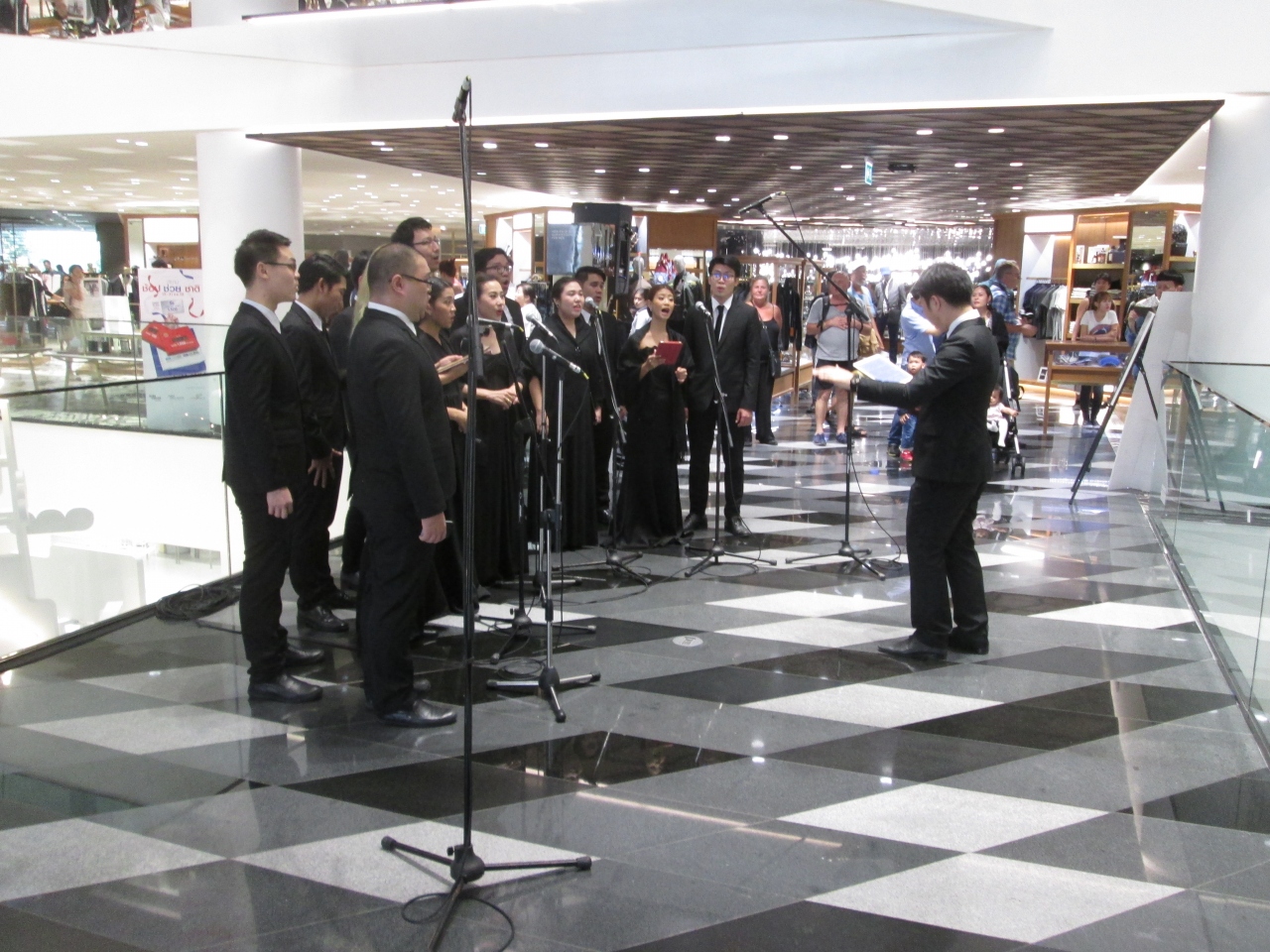 クリスマスの時期にサヤームディスカバリーセンターに訪問しました。各ショップでは、かわいいクリスマス関係の商品が販売されていました。特に、クリスマスイブということもあり、ゴスペルシンガーによる生歌のサービスがあり、クリスマスの雰囲気がたっぷり漂うロマンティックなムードでした。