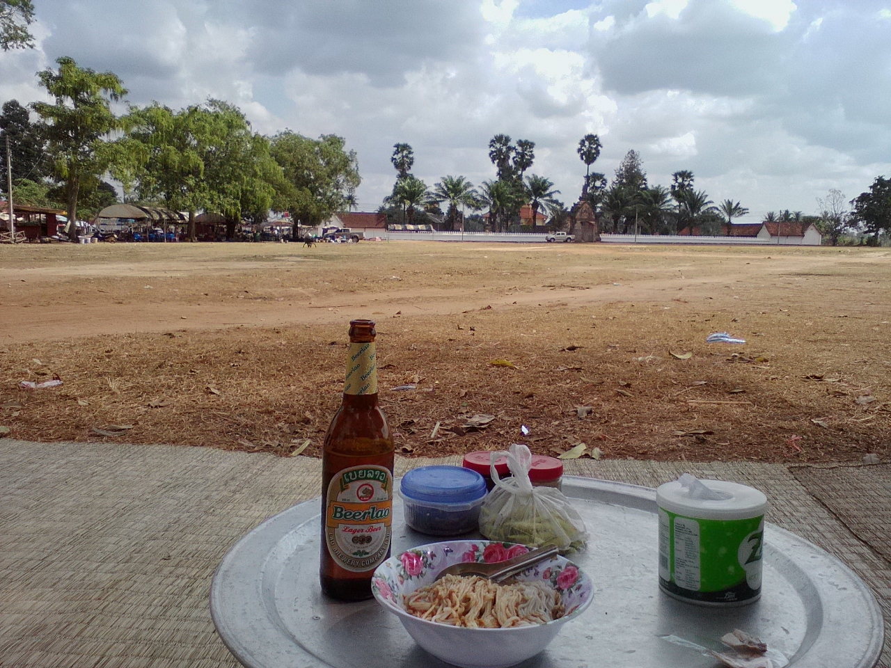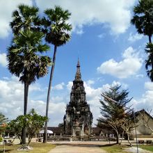寺院の中にシブい仏塔が建っています。仏塔エリアに入るには入場料5000kipが必要です(ちなみにラオス人は2000kip)。それほど多くはありませんが地元の参拝客が来ていました。ただ仏塔自体は大したことはなく、ただ眺めるだけなら西側の広場側の塀が低いのでそこからでも十分見られます。広場には屋台が出ているので食事もできます。