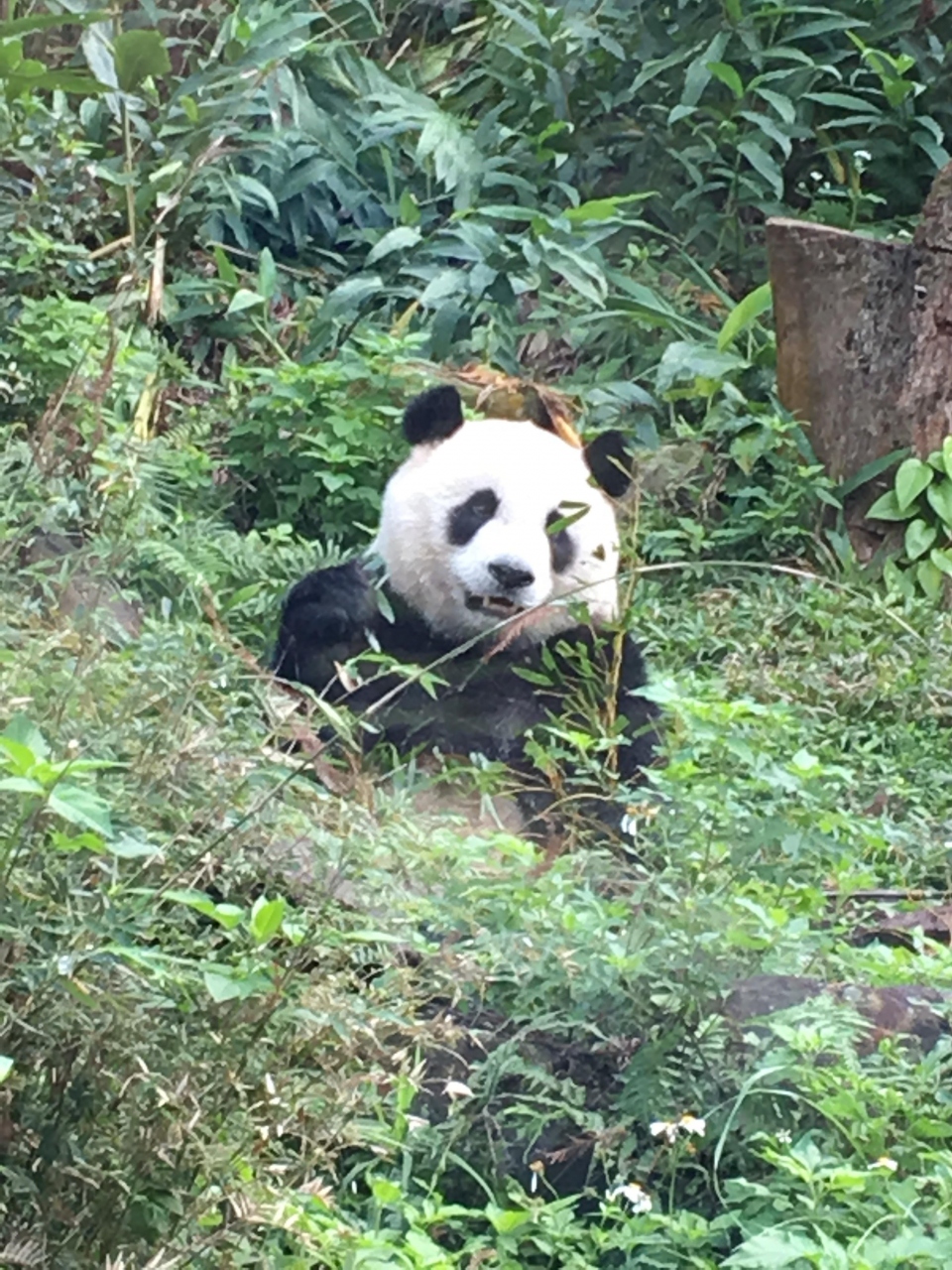 入り口で、犬猫熊館の入場時間を書いてある小さいチケットを渡され、早速、パンダ館まで急ぎ足。入場時間より早めに着いたので、外で観れる場所で待っていたら、パンダ登場!可愛い!!。餌を食べたり、登ったり、その姿だけで癒されました。