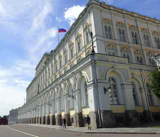 建物のてっぺんにはロシア国旗が掲げられています。