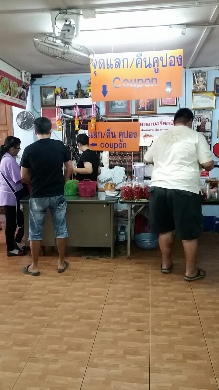 お昼時についたら、店の中は超満員。結構広い店舗で、入ったところに現金をクーポン券に交換してもらう。
