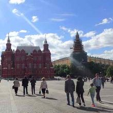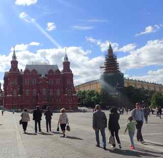 広場に入ると、目の前にレンガ色の立派な国立歴史博物館やヴァスクレセンスキー門が見えて、観光客がたくさん集まって写真を撮っています。