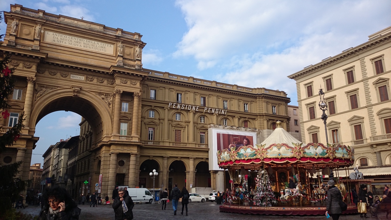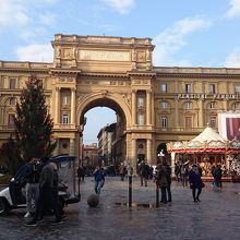 メリーゴーランドが目印ともいえるこの広場は、高級ブランドもあり