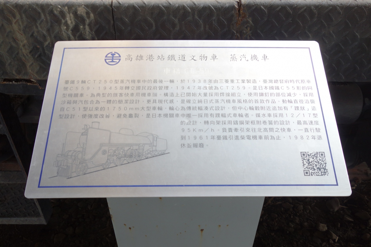 定休日の月曜日に行ったのですが、屋外展示は普通に見ることができました。かつての高雄港駅近辺が公園のようになったもので、広々です。線路がたくさん残っていて、SLもあって、写真撮影が楽しそう。結婚式の記念撮影しているカップルがいました。西小湾駅の反対の出口からはフェリーポートが近いのでそちらもおススメです。