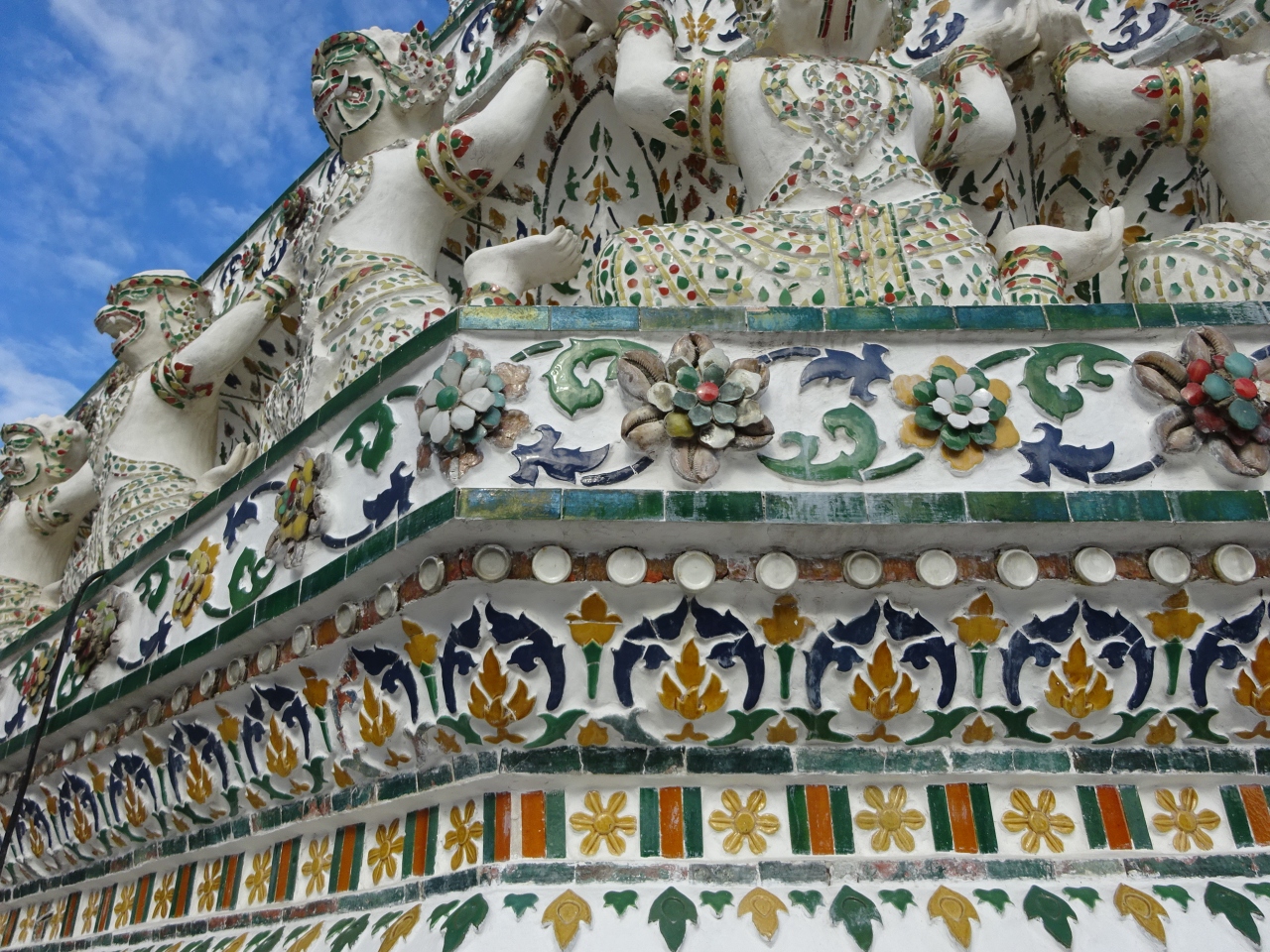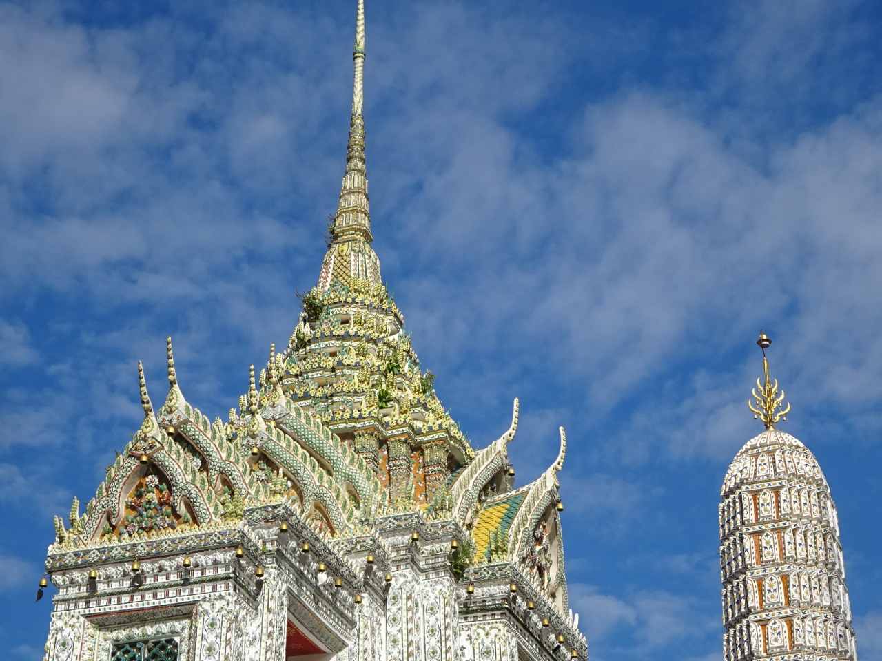 サトーン船着き場からボートでワットアルンに行きました。拝観料50バーツを支払って入場しました。今まで何度も拝観しましたが、今回は天気が良くて最高でした。青空に白い塔が浮かび出ていて写真も綺麗に撮れました。急な階段を登っては降りして景観を楽しみました。修復作業が進められており足場がある塔もありますが、さほど気になることはありませんでした。感激のワットアルンでした。