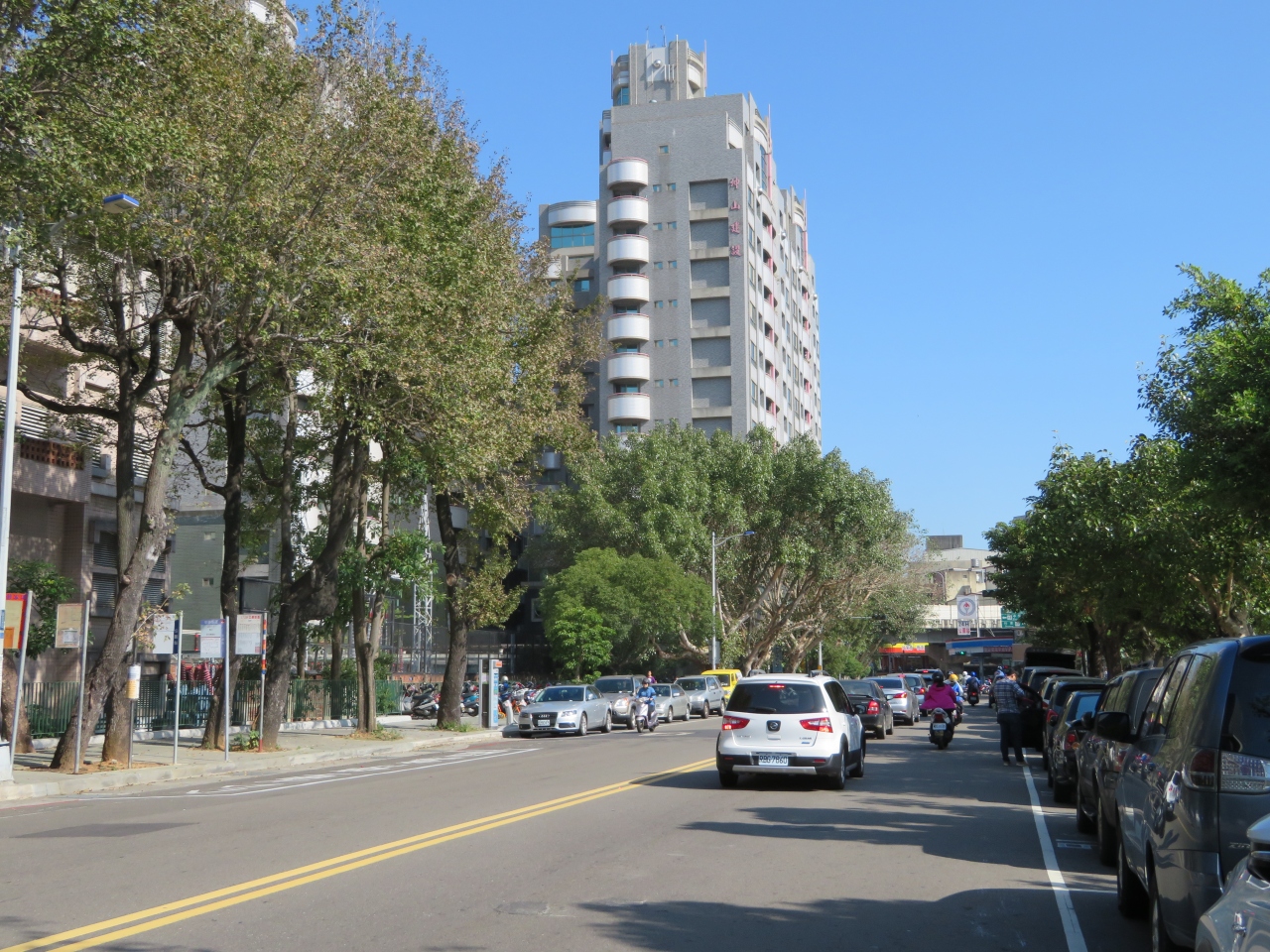 台鐵新竹駅の南側、新竹公園の北側で台鐵の線路側にある広い道路、道路沿いには西暦1916年にできた新竹公園があり中に日本庭園もあります、道沿いには鳥もいる麗池があり散策をする多くの市民がいます、通りは比較的通行量が少ないのと公園側には一部歩道があるので歩きやすいです。