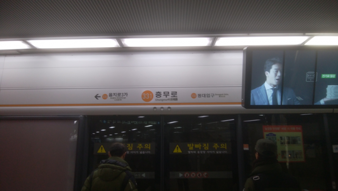 地下鉄の4号線と3号線の接続駅で路線が地下でワンフロア違いで十字でクロスしているので、上下のワンフロアー分の上下の移動で両線の間が乗り換えられるので、非常に楽な便利な駅です。コリアハウスやナムサンゴル韓屋マウルなどメジャーの観光スポットが最寄りの駅ですし、明洞にも比較的近く歩けなくはないです。利用したのが週末の夜でしたが、乗り換え客はそれなりにいましたが混雑しているとのレベルにはなっていないです。