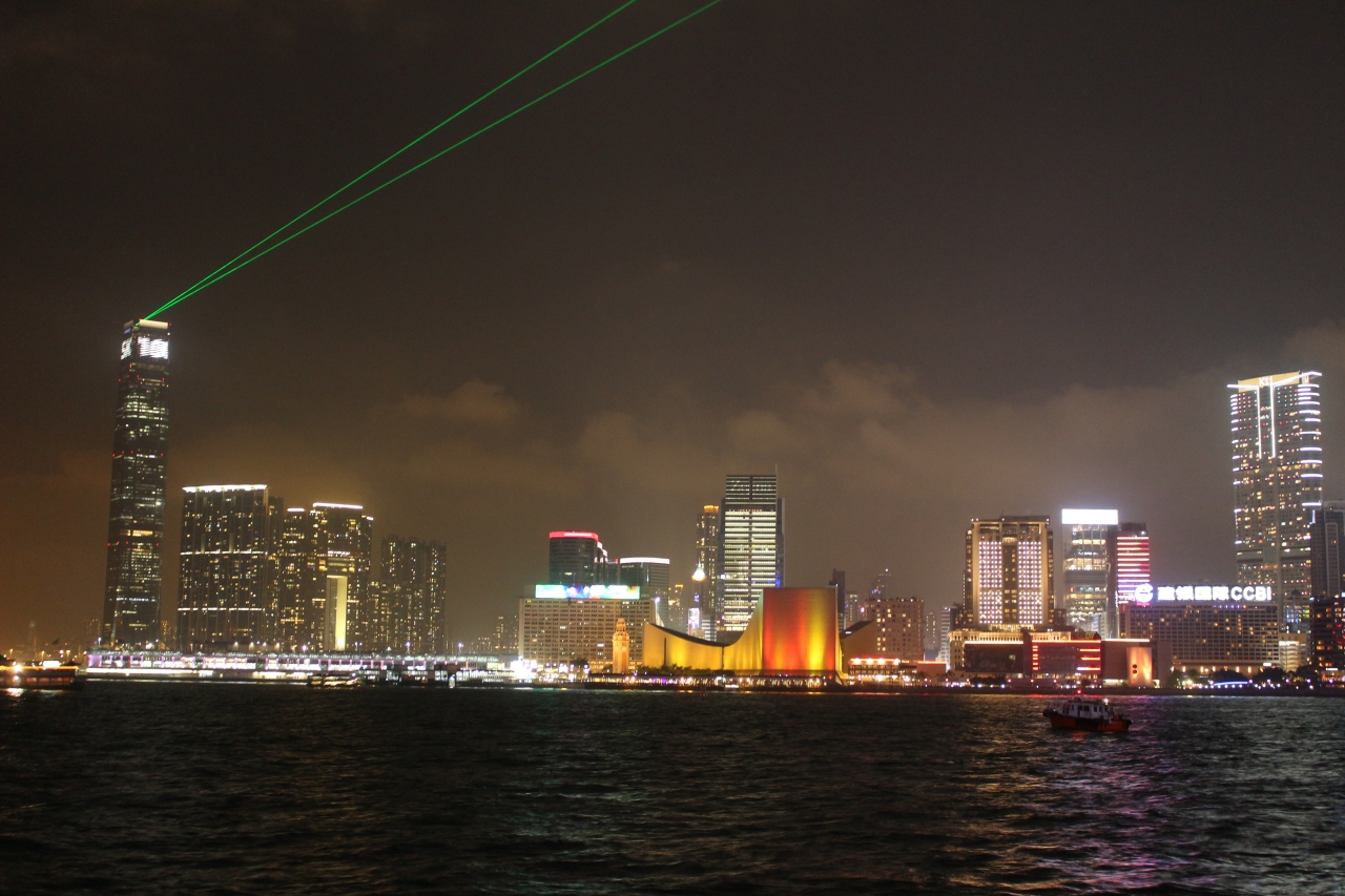 いくつかのビルの上サーチライトが少し照らされただけです。