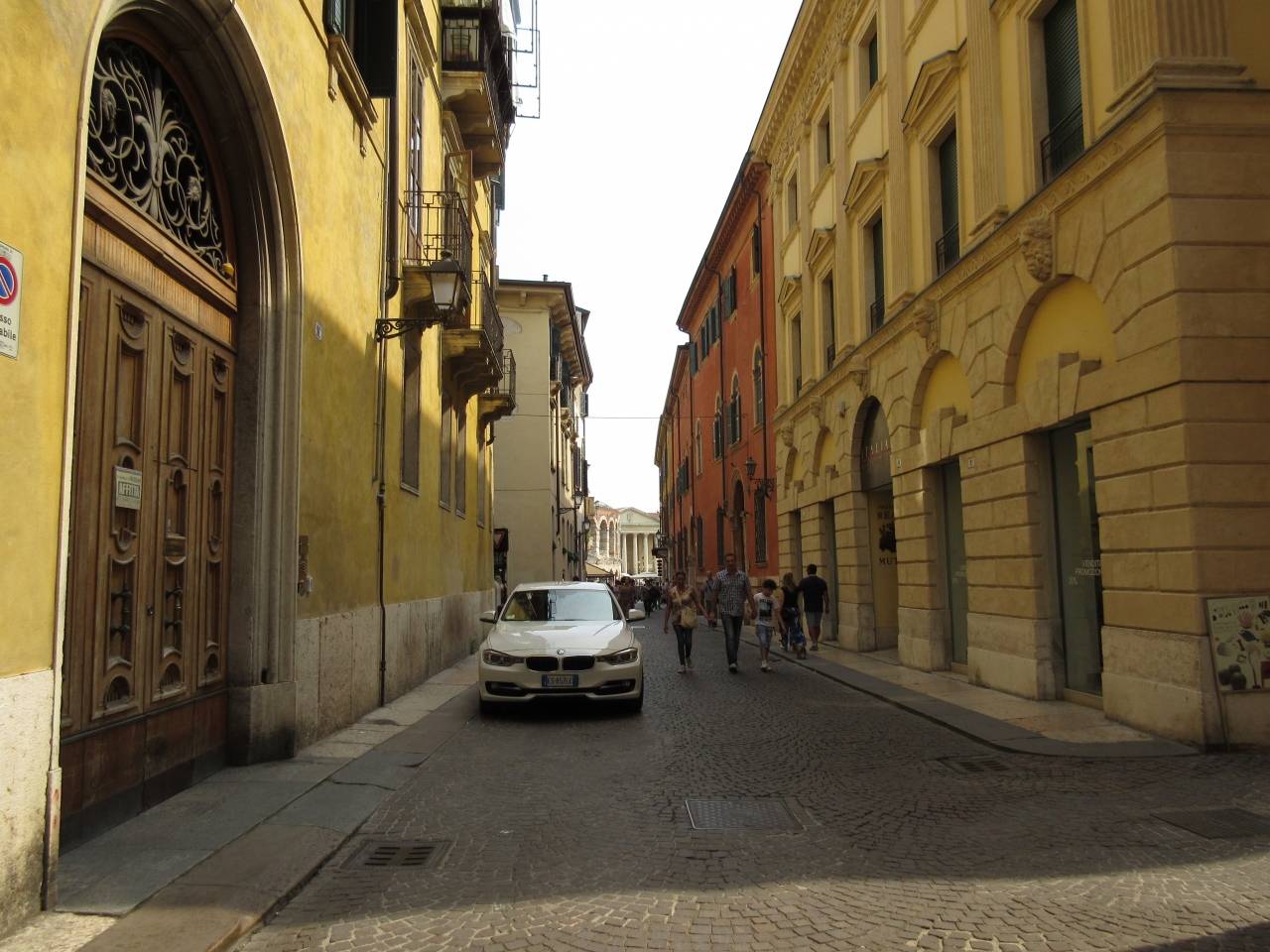 先史時代から集落はあったそうで町の歴史は古い。古さを感じさせる街並みである。ベローナは4つの街道の交わる交通の要所にある。建物は石造りで古いが、中に入っているショップは現代の需要に合わせて商品を並べている。ジュリエットの家へ行く道は多くの人で賑わっていた。