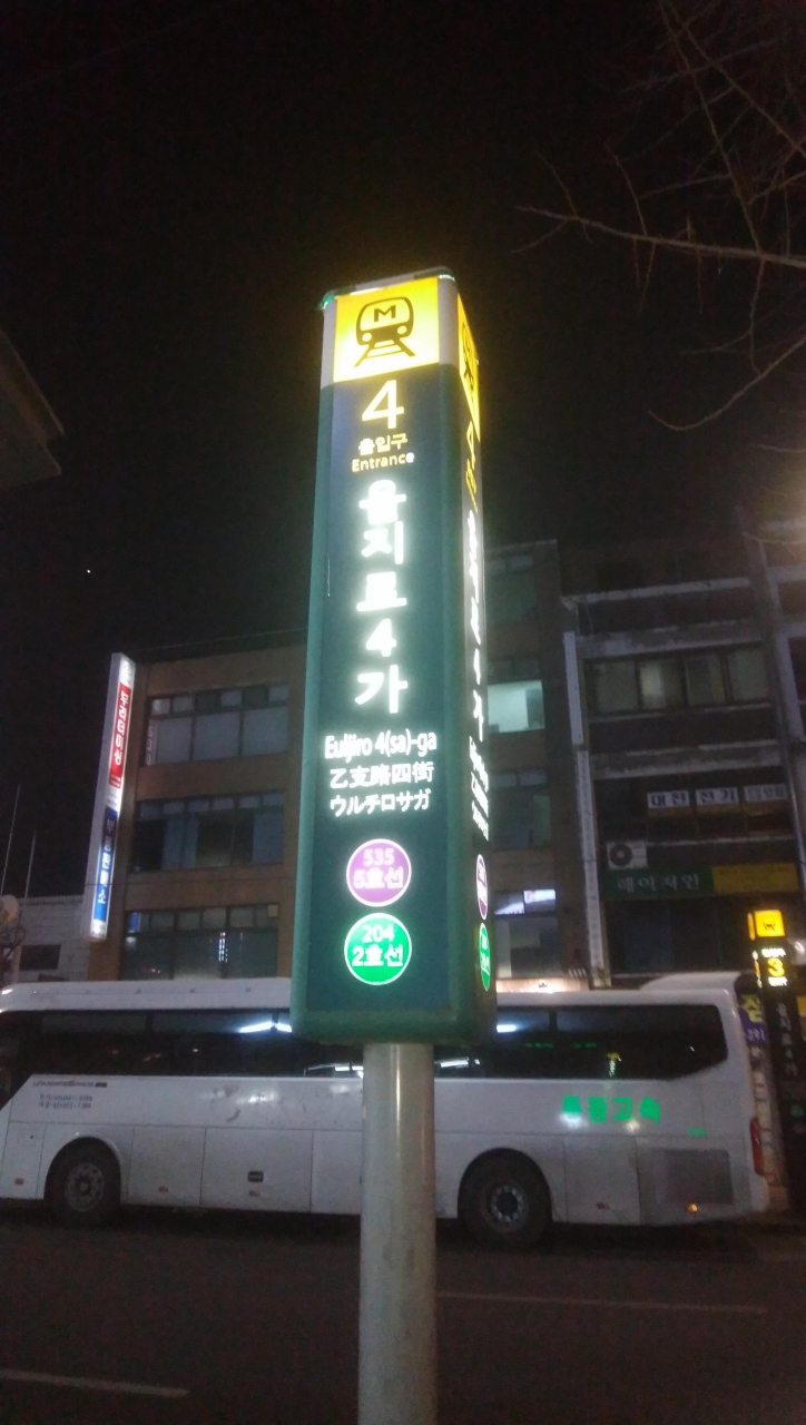 広蔵市場の最寄り駅は鐘路5街駅ですが、こちらの駅の方からも行くことができます。こちらからでも徒歩5分ぐらいの近さですので、滞在ホテルなどの最寄り駅によってはこちらの駅の方が便利な場合もあると思います。。駅自体は2号線と5号線の接続駅で2号線側は駅の改札は乙支路の地下道と一体となった構造になっており、韓国の地下鉄の中では初期に開通した路線でよく見かけるスタイルです。2号線は改札がホーム別に違うので、行き先を間違えて改札に入らないように注意が必要です。