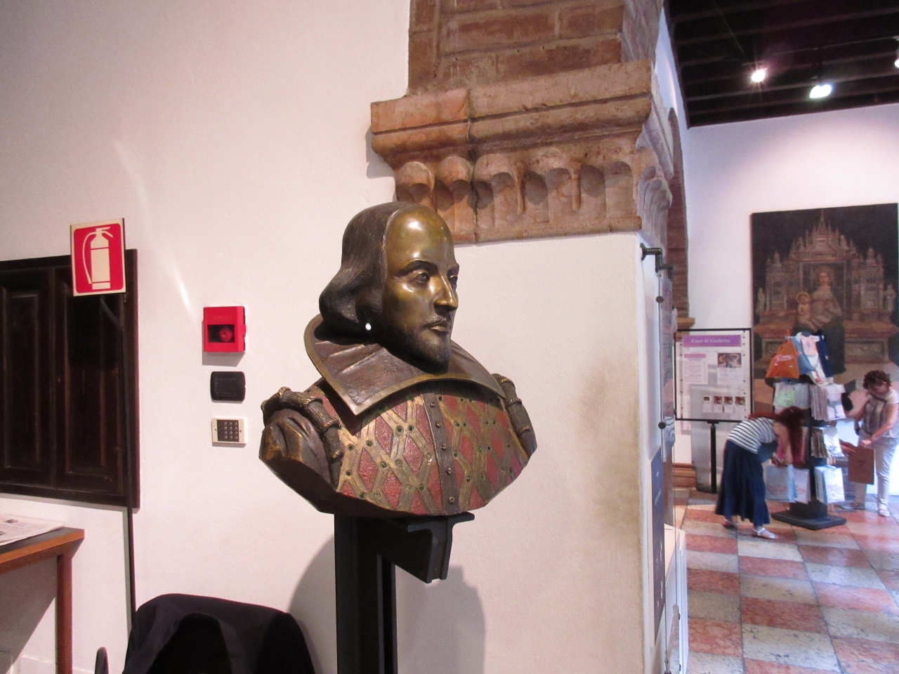 シェイクスピアはヴェローナを訪れたことがなく、ジュリエットもロミオも架空の人物であることが分かると、このジュリエットの家にはどういう歴史があるかを不思議に思う。家の中にはシェイクスピアの胸像が展示されていた。バルコニーに立つと、映画のロケに来ているような気分になれるところにこの家の魅力があるのかもしれない。