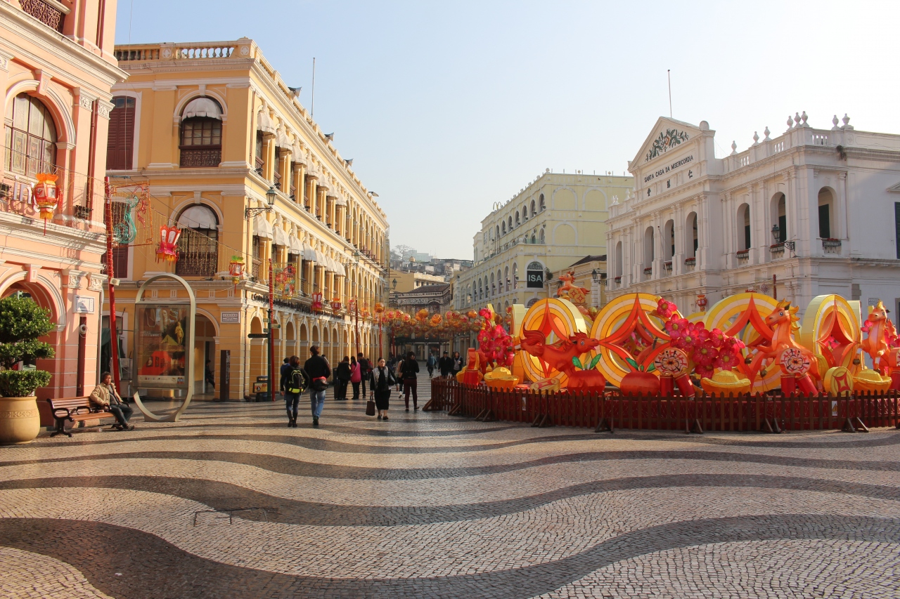 ポルトガルの名残りのあるマカオですが、ここのモザイク模様の石畳は、その象徴の1つかと思います。行った時は、旧正月の飾りと思われるものが噴水のあたりにまだ残っていて、少し興ざめでしたが、それでもきれいな石畳の道がここから伸びていました。