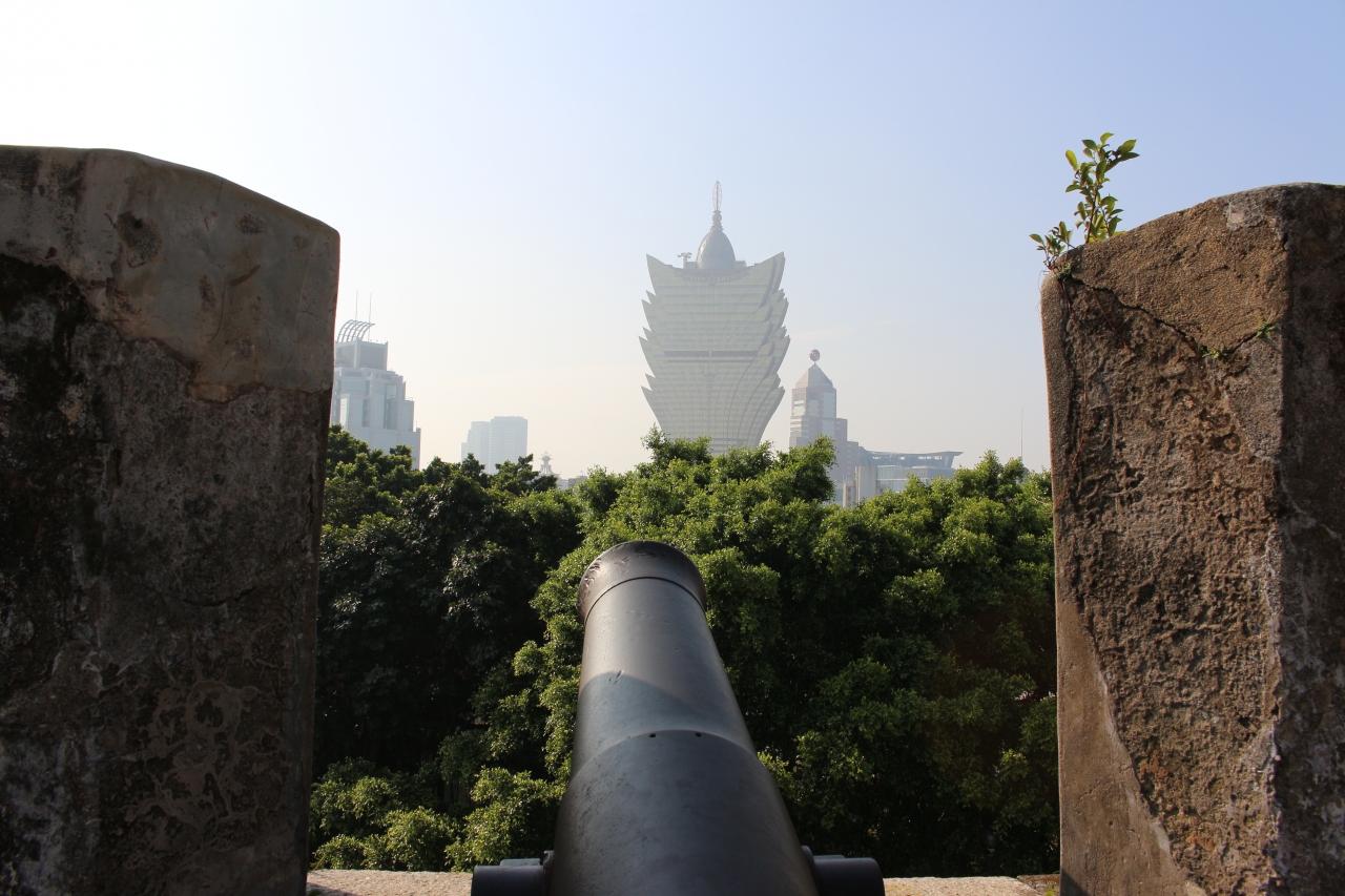 砲台もいくつか残っていますが、高台にあるので周囲がよく見渡せ、マカオのカジノホテルを遠望することができます。