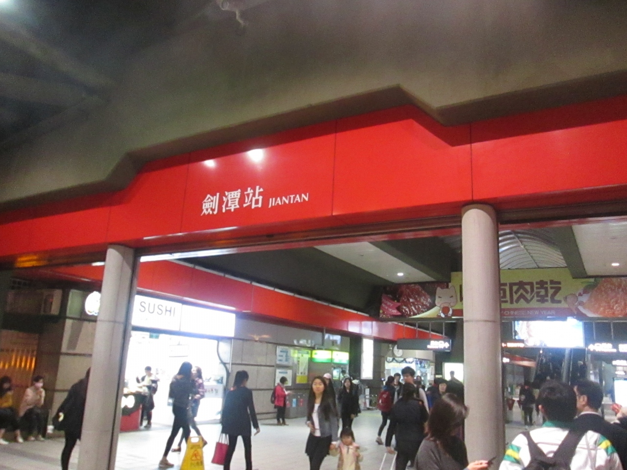 MRTの剣潭站は、士林観光夜市の最寄り駅です。夜は夜市に行く人でとてもにぎわいます。たくさんの人が乗降します。駅からは人が行く方向に歩いていけば、士林観光夜市へたどり着くことができます。夜市から帰る時間は券売機が混むこともあるので、カードを持っていると便利です。