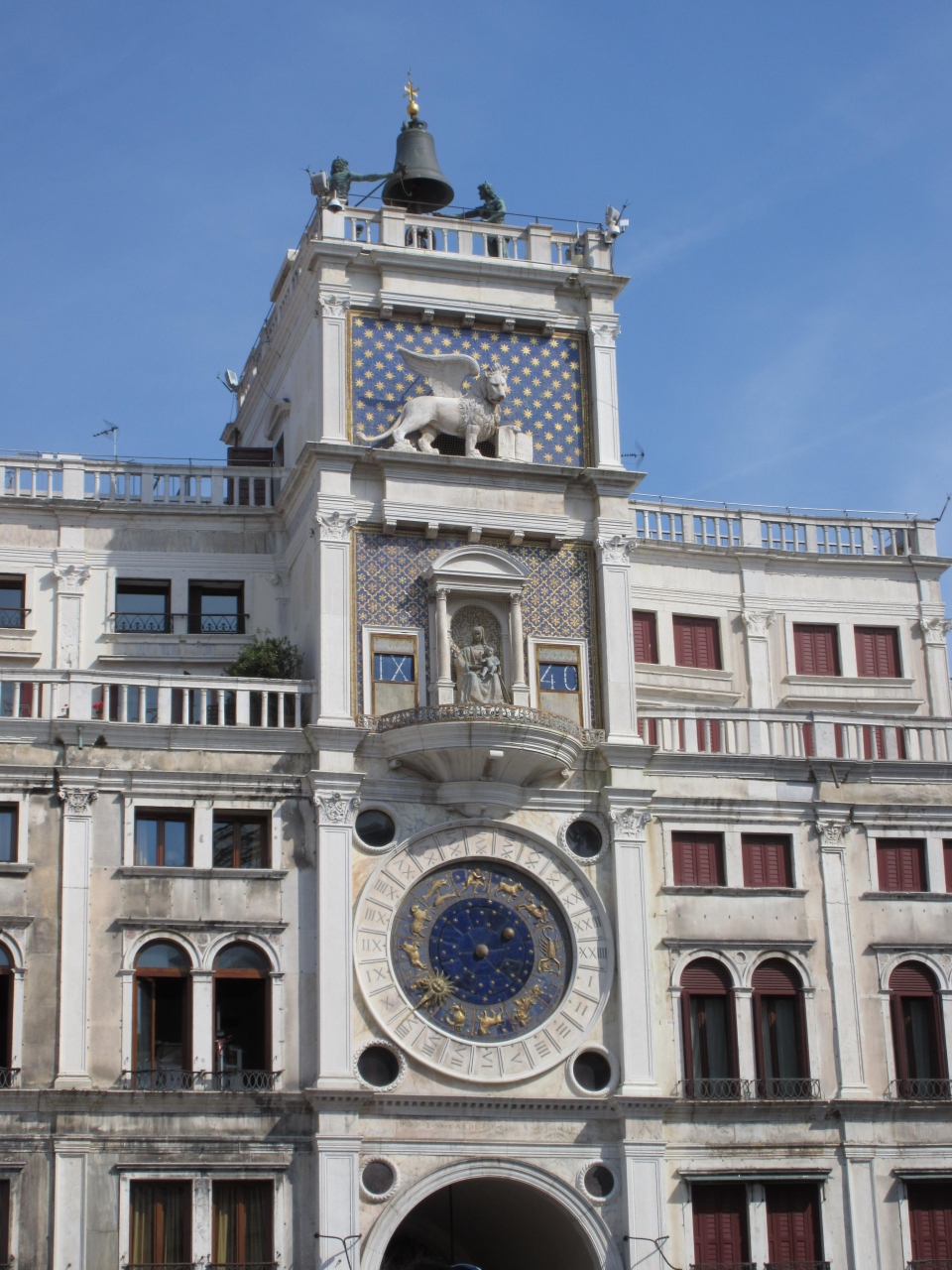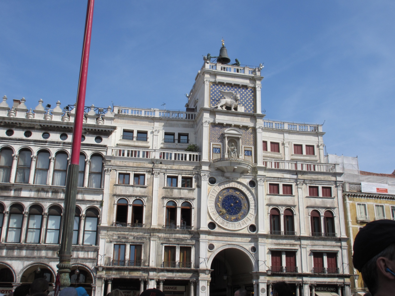 サンマルコ広場の北側にある。屋上のブロンズ像が大きな鐘を打って時を知らせる仕組みになっている。大きく広場からよく見える。待ち合わせをするのに便利な場所だ。鐘の音は近くのお店の中にいても聞こえる。15世紀に作られている。