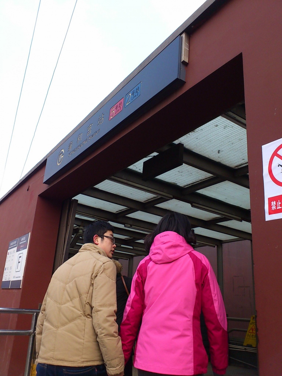 名前の通り北京にあるチベット寺院の雍和宮の近くにある駅です。地下鉄2号線と5号線が交わっています。2号線で雍和宮に行きましたが、5号線の出口の方が雍和宮に近いです。駅から雍和宮までの道沿いにはお土産物屋が並んで、とても賑やかです。