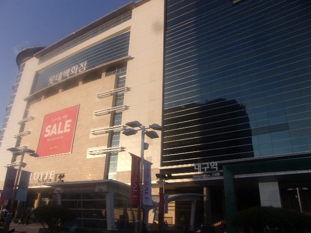 韓国第三の都市大邱のロッテ百貨店は大邱駅に直結していて、鉄道利用者には特に便利な立地で悪天候時も外を歩かずにアクセスできます。ソウルや釜山のロッテと比較すると規模は小さいですが、ここのロッテは案外庶民的な雰囲気で、地下鉄駅に通じる通路上には出店なども見られて、生活臭が感じられるのが良かったです。