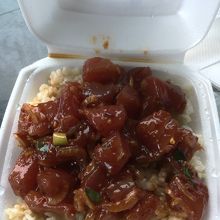 しょうゆ味のマグロのポキ丼をオーダー。白米か玄米か選べ、ミネラルウォーターか缶のジュースがついて$8.85でした。