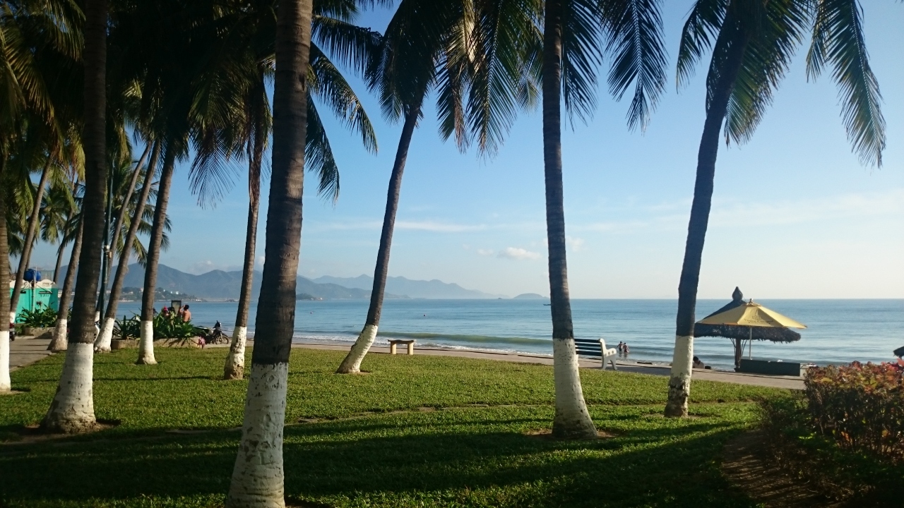 ゆったりと弧を描いているビーチに出ると「リゾート」という感じ満載です。各ホテルの専用パラソルやチェアーが置いてあるので、そこでくつろぐものよし。1月の訪問で海に入るのは寒いかとも思いましたが、結構朝早くから入っている人も多く見られました。