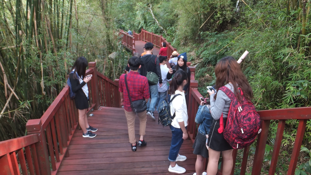「台湾好行バス」の木柵平渓線終点バス停から「十分大瀑布」に向かう道がウッドデッキ風に綺麗に整備されています。車椅子でも進むことが可能です。森林浴をしながらゆっくり進むと徐々に十分瀑布に近づきます。遊歩道脇には珍しい台湾原生の植物などもあり楽しめます。