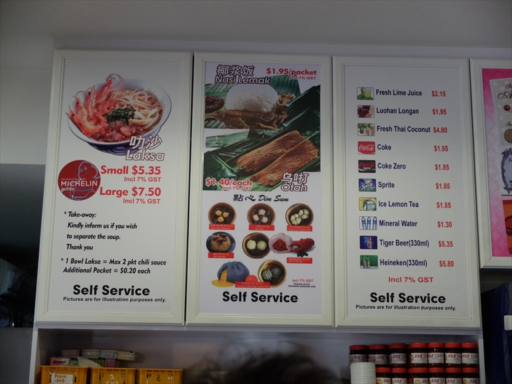 ラクサは、大が7.5シンガポール・ドル、小が5.35シンガポール・ドル。