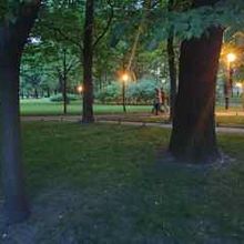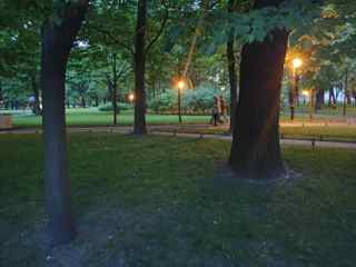 緑が美しくきれいに整備された公園で、ベンチもたくさんあります。