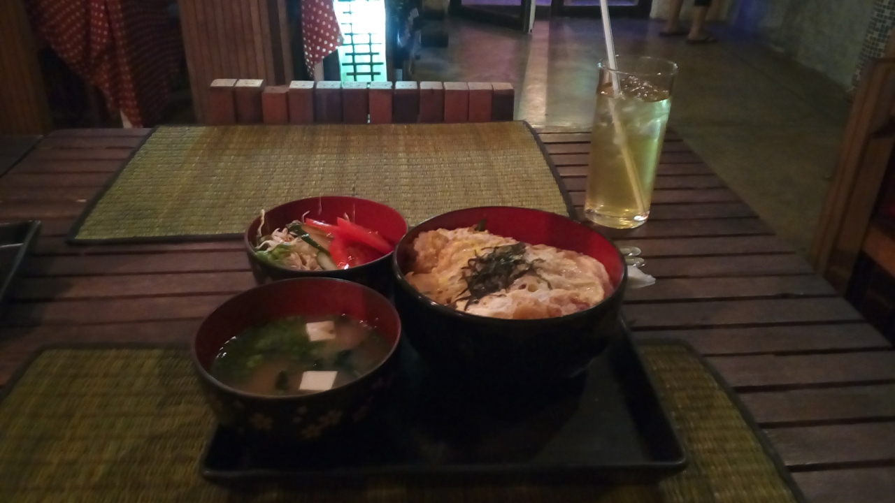 バンコクのwireless通りの高級ホテルに宿泊しているときには、当然のように食事処に迷う。なぜならこの辺りはどこ行っても高いからだ。コンラッドに宿泊するこの日もふらふらとさまよっていた時に目についたのがこちらのお店。タイ料理と日本料理どっちも取り扱う不思議な雰囲気のお店だが、かつ丼セットが180バーツとなかなかお得で味もよかった。