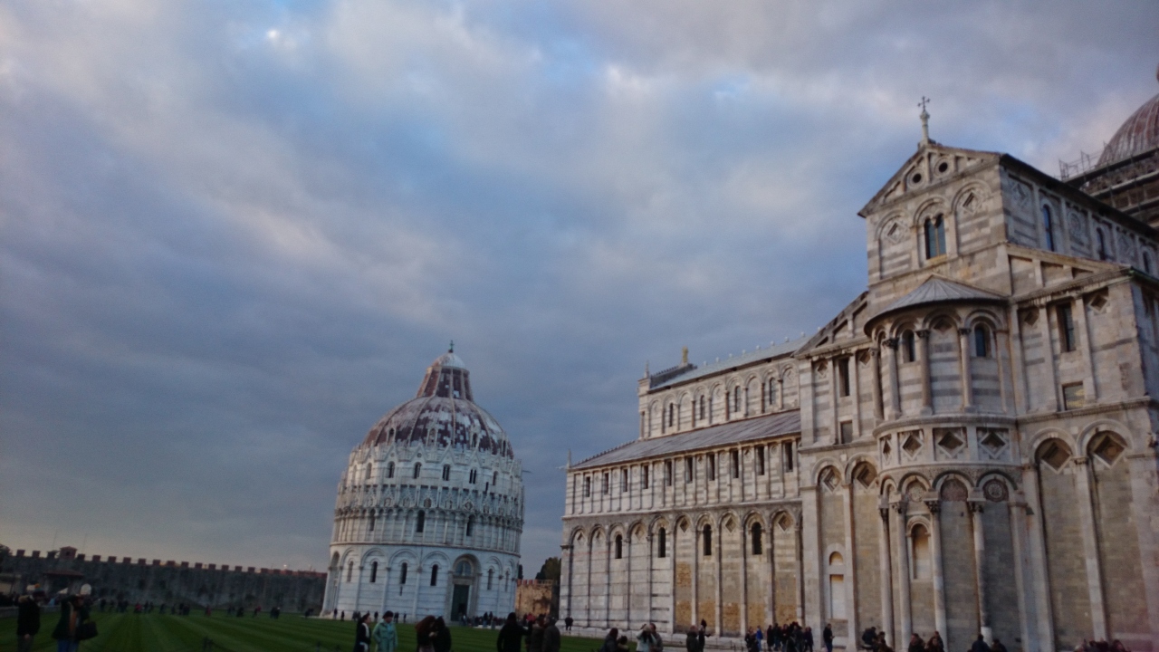 円形の洗礼堂は、ロマネスク様式と上部はゴシック様式で構成されているそうです。