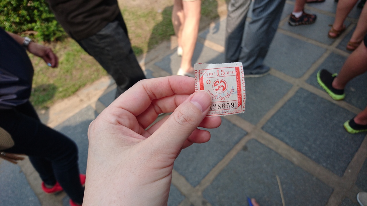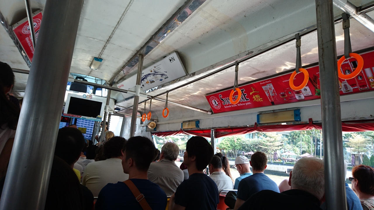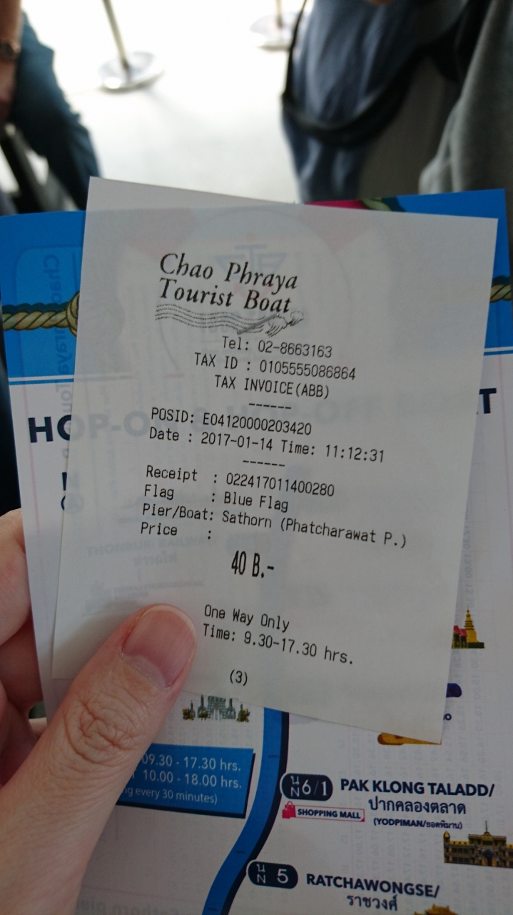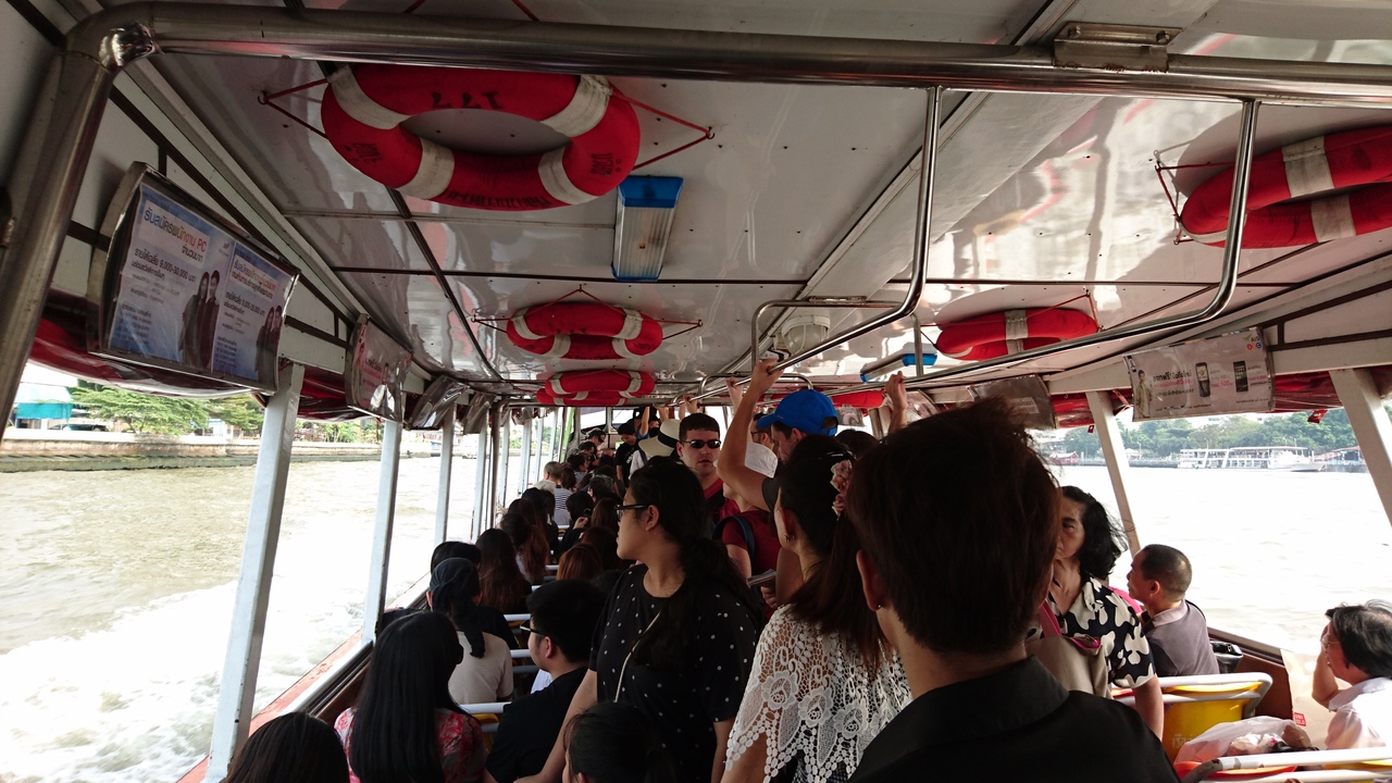 行きは青旗のツーリストボート、帰りはオレンジ旗のボートです。ツーリストボートは片道40バーツ、オレンジは15バーツです。ツーリストボートは停留所が書かれた地図がもらるのと、ボート内で英語での説明があるぐらいです。なので、15バーツのボートで十分です。現地の人だけでなく、観光客も沢山利用しています。