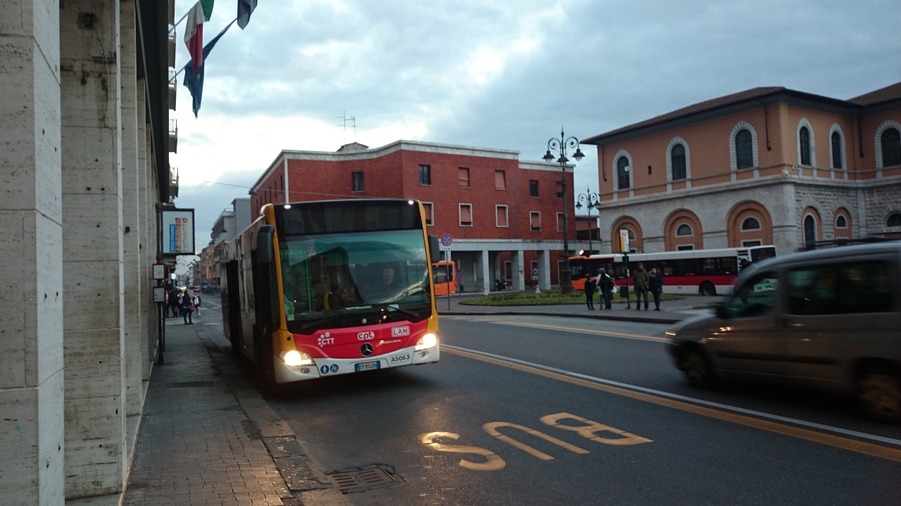 ピサ中央駅から、ピサの斜塔まで歩く方、バスで行く方と