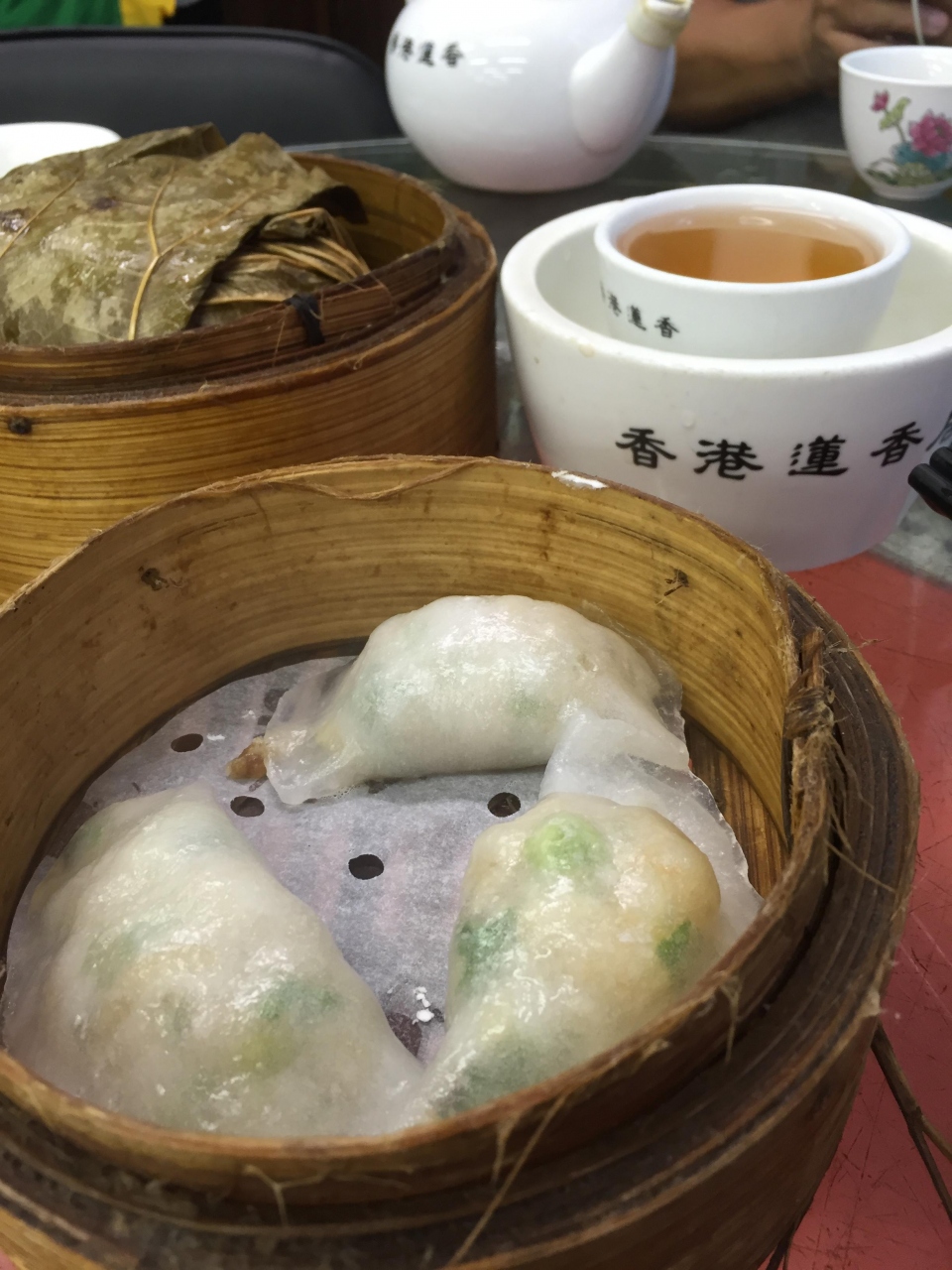 朝食の飲茶で利用。朝の時間帯で、地元客でいっぱい。丸テーブルを別の客と相席になる。料理を載せたワゴンがぐるぐると回るタイプ。各組に一枚スタンプ表が配られるので、料理をもらったら、それにスタンプを押してもらう。それにしても、みんな、朝から、よく食べる。