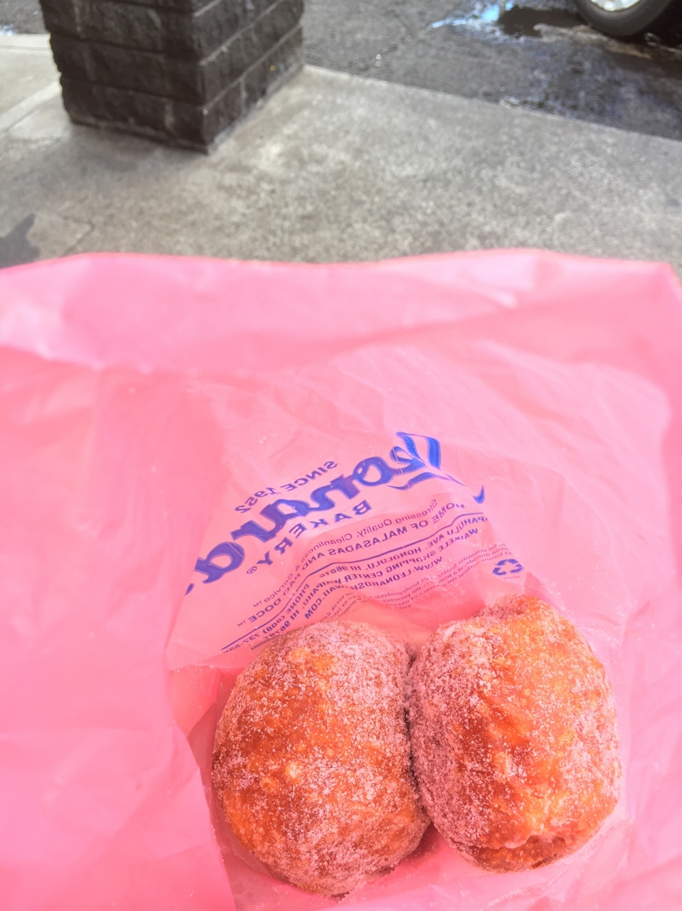 注文するとあつあつの揚げたてをいただけます。マラサダオリジナル$1.10、パフ(カスタード)$1.50でした。
