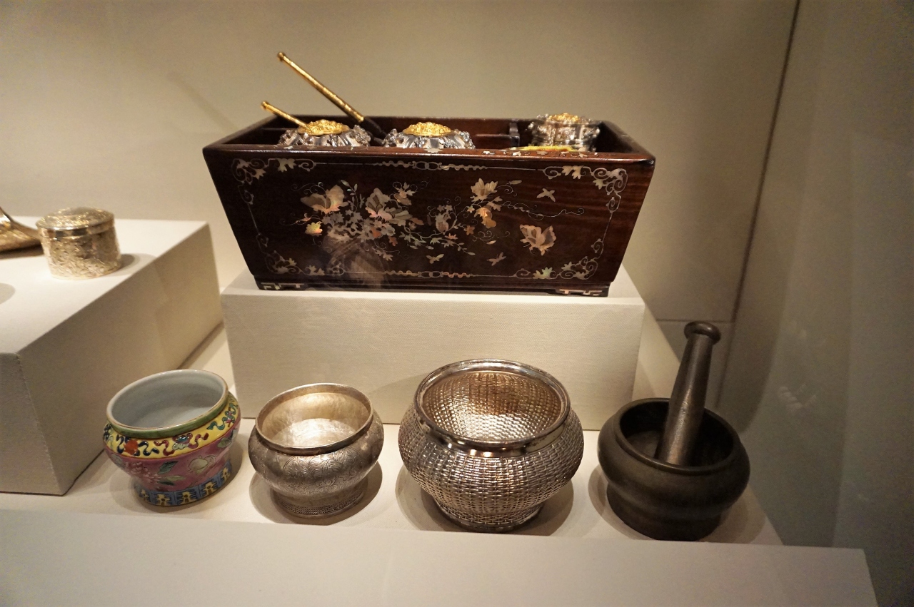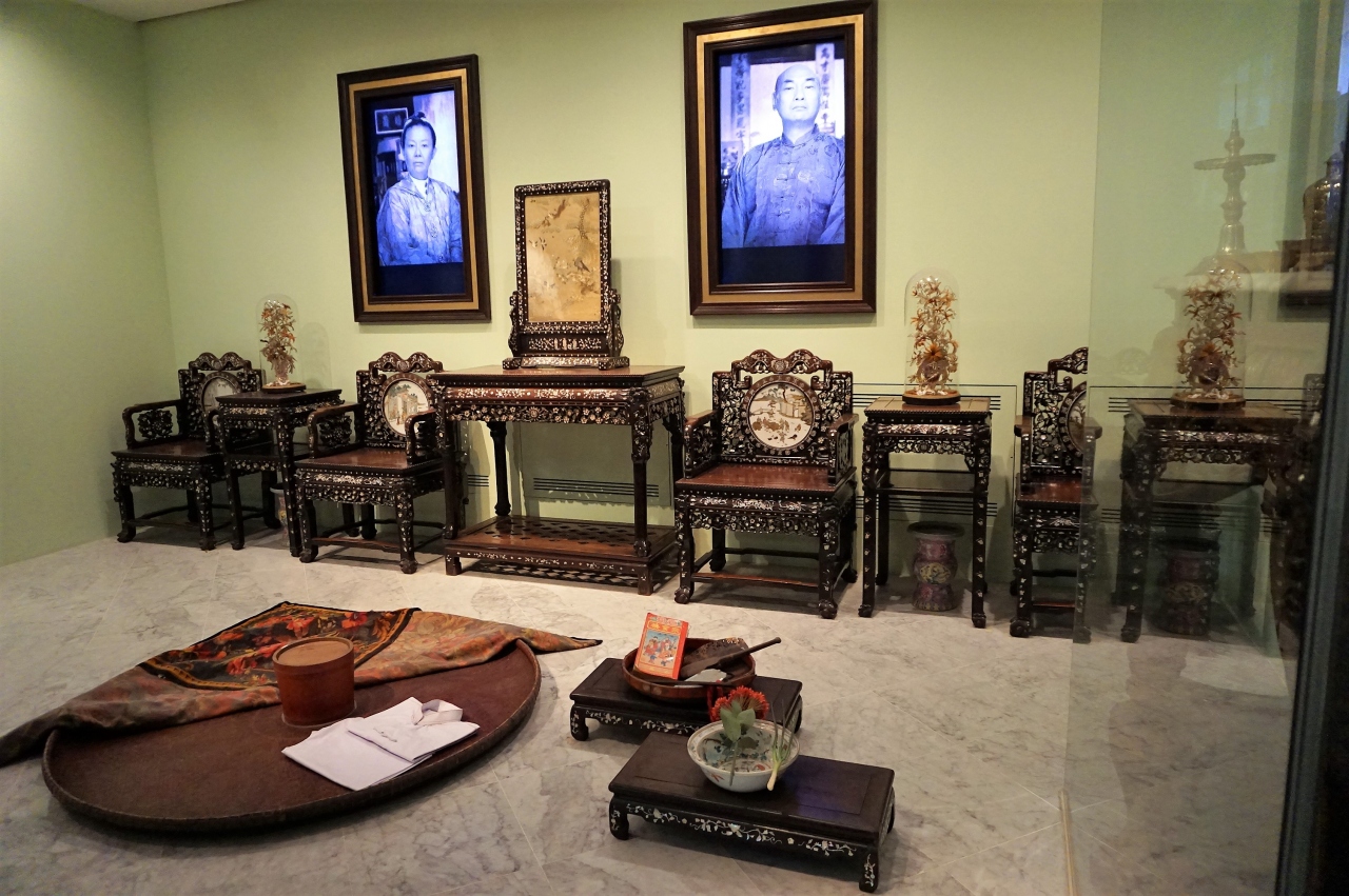 中国人を中心とする、マレー半島にやって人々が現地の女性と結婚し、貿易などで得た富で築いた裕福な暮らしを知ることができます。展示は、プラナカンの女性に焦点を当ており、婚礼に関する品々を見ながら、独特のしきたりもわかるようになっています。