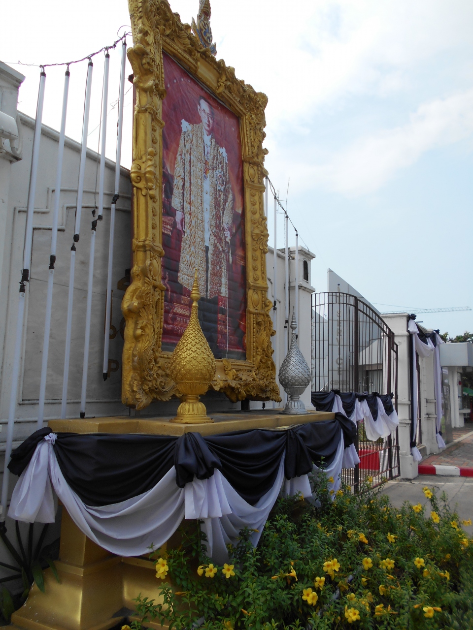 ノースパタヤのシンボルのドルフィンサークルからバンコクに行くバスターミナルへの途中にあります。前国王が亡くなったためか、黒と白の幕で覆われいました。大きな金縁の遺影が掲げられていました。まだ工事中なのか、前庭の途中に柵がもうけられていました。