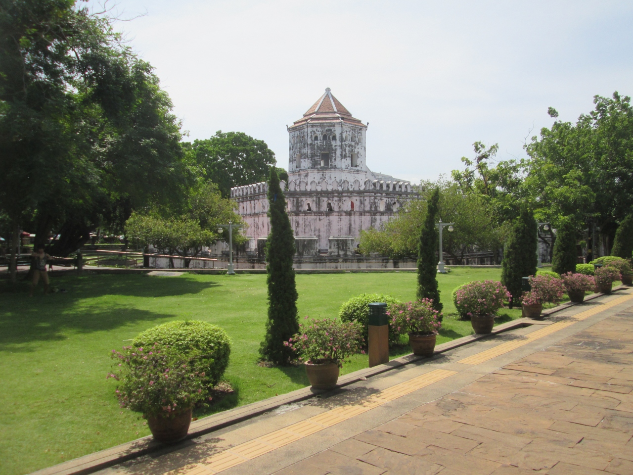 公園のプラアティット通り側にはラーマ1世の時代に建てられた白いプラスメーン砦があります。大砲の付いた白い八角形の形をした三重塔の要塞です、見ごたえがあります。入口の反対、チャオプラヤ川側に来ると、ラマ8世橋が見え、天気が良いと川の往来している船を見学することができます。