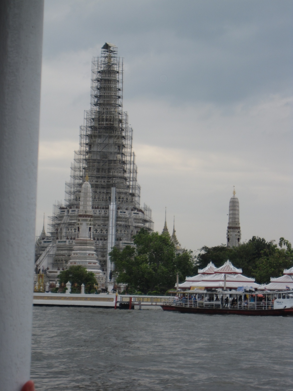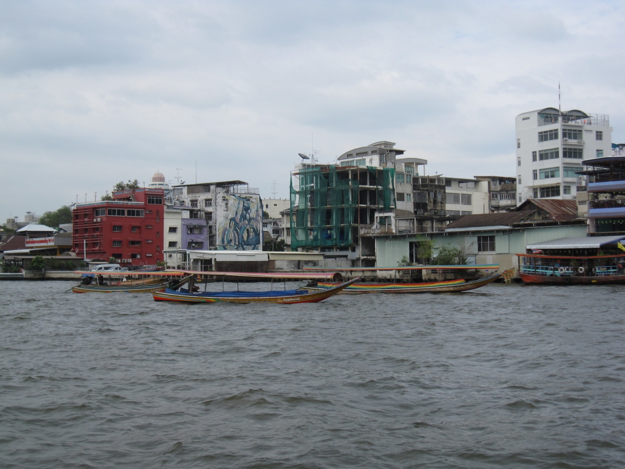 12月にアンコールワット見学に行きましたが、日本から直行便がなくバンコク経由便を利用。帰国時に乗り継ぎ時間が11時間あったので、ワット・ポーとワット・アルン(暁の寺院)を見学することなり、交通手段としてチャプラタ川運行船を利用するため、サトーン船着場から往復しました。ガイドブックには船賃は15バーツと書いてありましたが40バーツの船に乗りました。少し高いと思いましたが程よい川風を受け快適でした。サトーン船着場を出ると20年以上前に宿泊したシャングリラホテルが見えます。川沿いのテーブルで朝食をとったことなどを思い出しなつかしくなりました。近代的建物もあれば昔ながらの古びた建物もみえます。画一的な風景でないところにタイらしさを感じました。しばしゆったりした時間を過ごすことができました。ただ予想と違っていたのは船はワット・ポー側に到着すると思っていましたが、ワットアルン側に到着。対岸には渡し船(4.5バーツ)で渡るしかありません。帰りも再度ワット・アルン側まで渡り、サトーン船着場まで帰りました。これもガイドブックの案内とは違い戸惑いましたがワットアルン側に着く船があるのかもしれません。