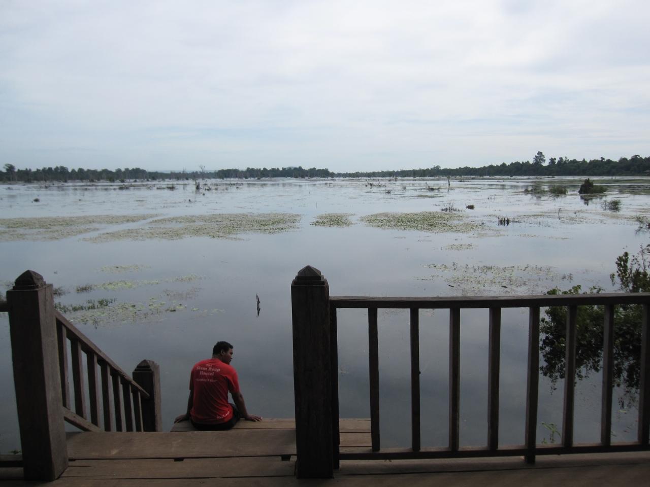 バンテアイ・クデイの迫力に圧倒され、また、暑さに少しまいっていた時に丁度道を挟んだ向いに大きな池がありました。こればスラ・スランであり事は後でガイドブックを見て知りました。昔は王さまの沐浴池としてでは使われていなそうですが沐浴するにしては規模が大きいと思いました。アンコールワットには大きな沐浴池が点在していますが、ときどき子供たちが池の中で遊んでいる姿を垣間見ることがあり、昔は偉い方が沐浴した事が想像できました。