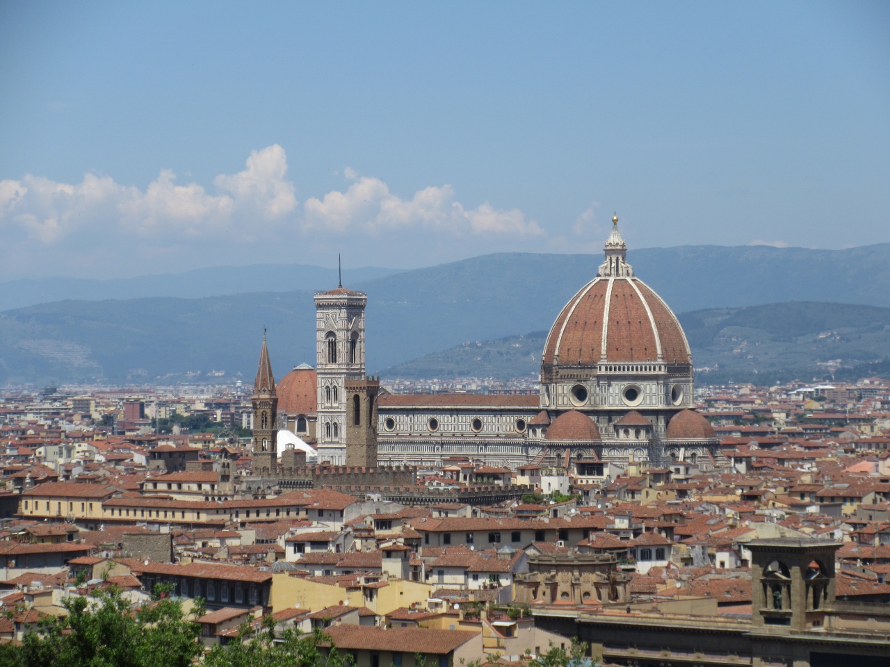中央にミケランジェロのダヴィデの像があるのでミケランジェロの名前がついているのではないかと思う。ドーモのクーポラが中心に見え、町全体を見ることが出来る。フィレンチェの街の美しさが分かる。写真を撮影する人で混んでいた。